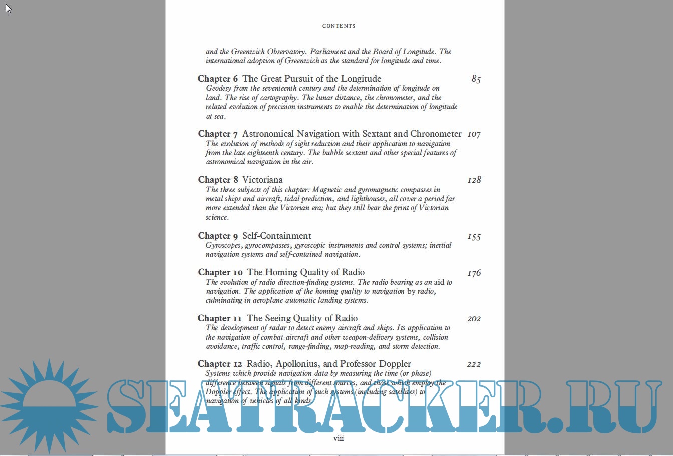 Year: 1994 Language: english Author: J. E. D. Williams Genre: Textbook Publisher: Oxford University Press Edition: 1 ISBN: 9780198563990 Format: PDF Quality: eBook Pages count: 321 Description: Developments in navigational science can be traced from beginnings 23 centuries ago when the Greeks tried to calculate latitude to the present when satellite systems can easily pinpoint positions to within millimetres. The history of navigational science offers vivid insights into the areas of human endeavour which have driven it: the need for discoverers such as Columbus to locate and claim distant lands for their sovereigns and paymasters; the need of merchants in a world of expanding horizons and trade for efficient and reliable shipping; the new an durgent needs of rapidly developing air travel where safety demands accurate and quick navigation in very difficult conditions; the deadly needs of the military in targetting missiles and sailing submarines in radio silence. In servicing these needs navigational science has made use of very diverse scientific discoveries: simple geometry and calculations in dead-reckoning and the use of magnetic compasses; more complicated mathematics and more accurate mechanisms in astronomical navigation; the properties of radio waves in homing and direction-finding systems; the self-contained world of gyros and inertial guidance systems; and most recently the combination of computing power, micro-electronics, and satellites to give the startling millimetre-accuracy of current systems.