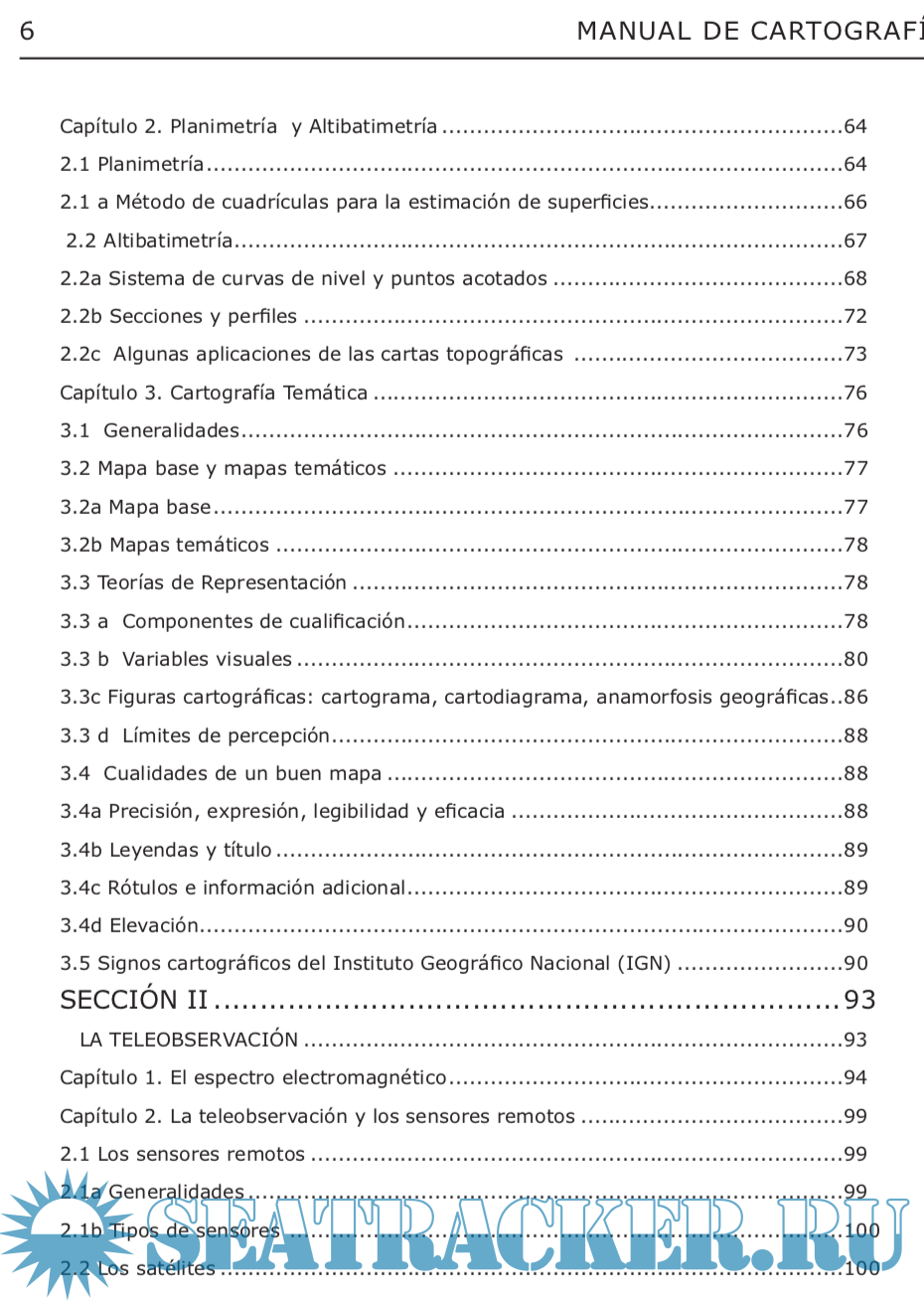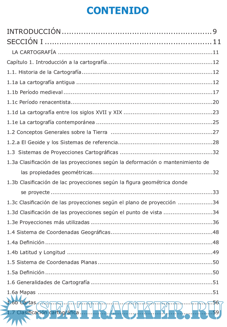 En el manual se describen los principios históricos, funcionales y apli- caciones básicas de la cartografía, la teleobservación y los sistemas de información geográfica (SIG). El mismo está estructurado en Secciones y subdividido en Capítulos