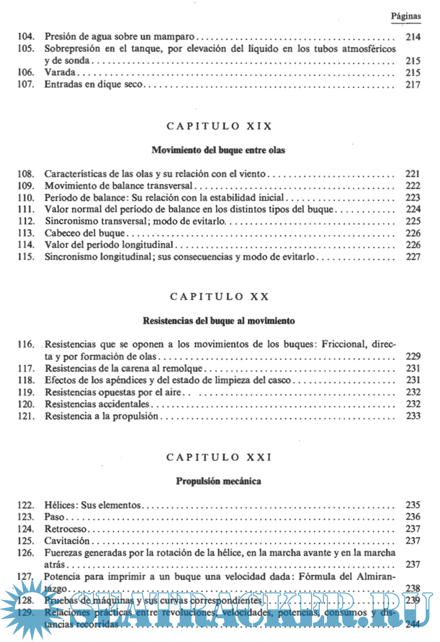 Description: An old ship theory manual. For years the Spanish sailors used it as a reference book. Includes static and dynamic stability; loading and unloading of weights, beaching, flooding, propeller and helm evolutionary effects, oil tanker loading, grain loading, gas tanker loading, etc.
