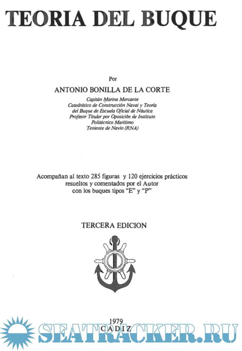 Year: 1979 Language: spanish Author: Antonio Bonilla de la Corte Edition: 3rd Format: PDF Quality: Unknown Pages count: 746 Description: An old ship theory manual. For years the Spanish sailors used it as a reference book. Includes static and dynamic stability; loading and unloading of weights, beaching, flooding, propeller and helm evolutionary effects, oil tanker loading, grain loading, gas tanker loading, etc. Includes 105 solved and commented exercises, as well as numerous examples throughout the text. It continues to be of great help in understanding the essential concepts of the subject.