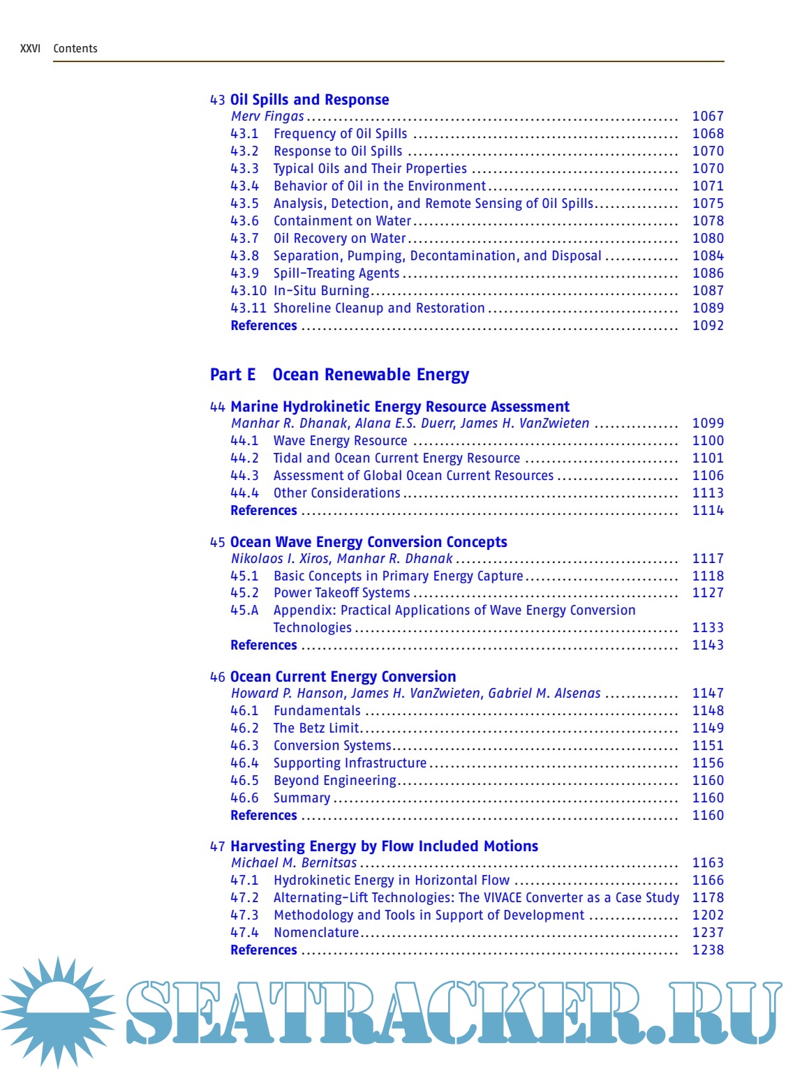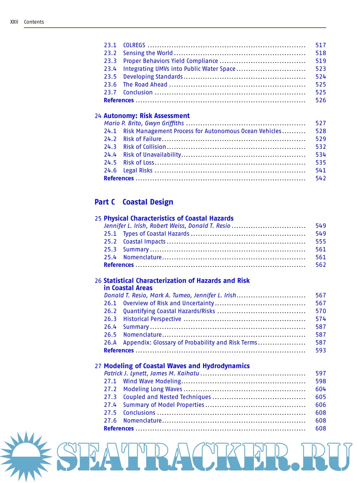 The Springer Handbook of Ocean Engineering is organized in five parts: Part A: Fundamentals, Part B: Autonomous Ocean Vehicles, Subsystems and Control, Part C: Coastal Design, Part D: Offshore Technologies, Part E: Energy Conversion