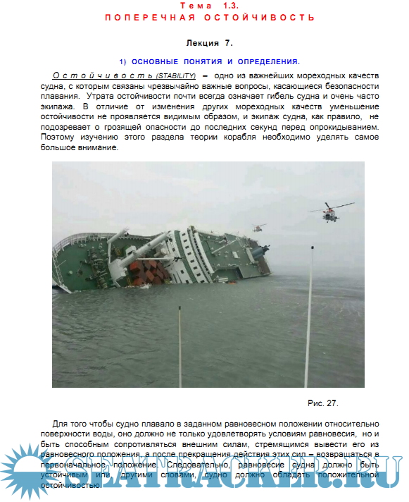 ходных качеств: плавучести, остойчивости, непотопляемости, управляемости, ходкости, поведения судна на волнении;