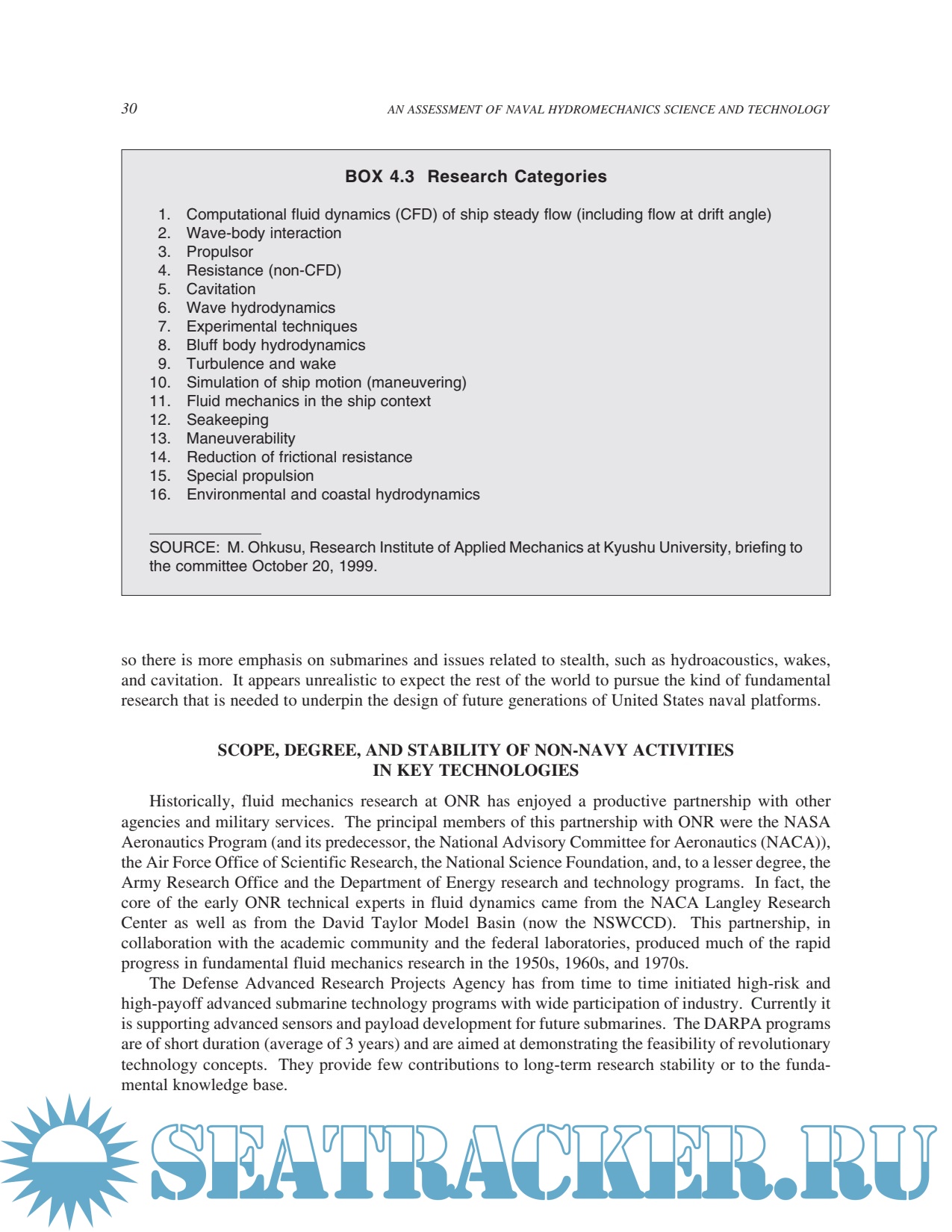 Description: The Department of the Navy maintains a vigorous science and technology (S&T) research program in those areas that are critically important to ensuring U.S. naval superiority in the maritime environment. A number of these areas depend largely on sustained Navy Department investments for their health, strength, and growth. One such area is naval hydromechanics, that is, the study of the hydrodynamic and hydroacoustic performance of Navy ships, submarines, underwater vehicles, and weapons. A fundamental understanding of naval hydromechanics provides direct benefits to naval warfighting capabilities through improvements in the speed, maneuverability, and stealth of naval platforms and weapons.