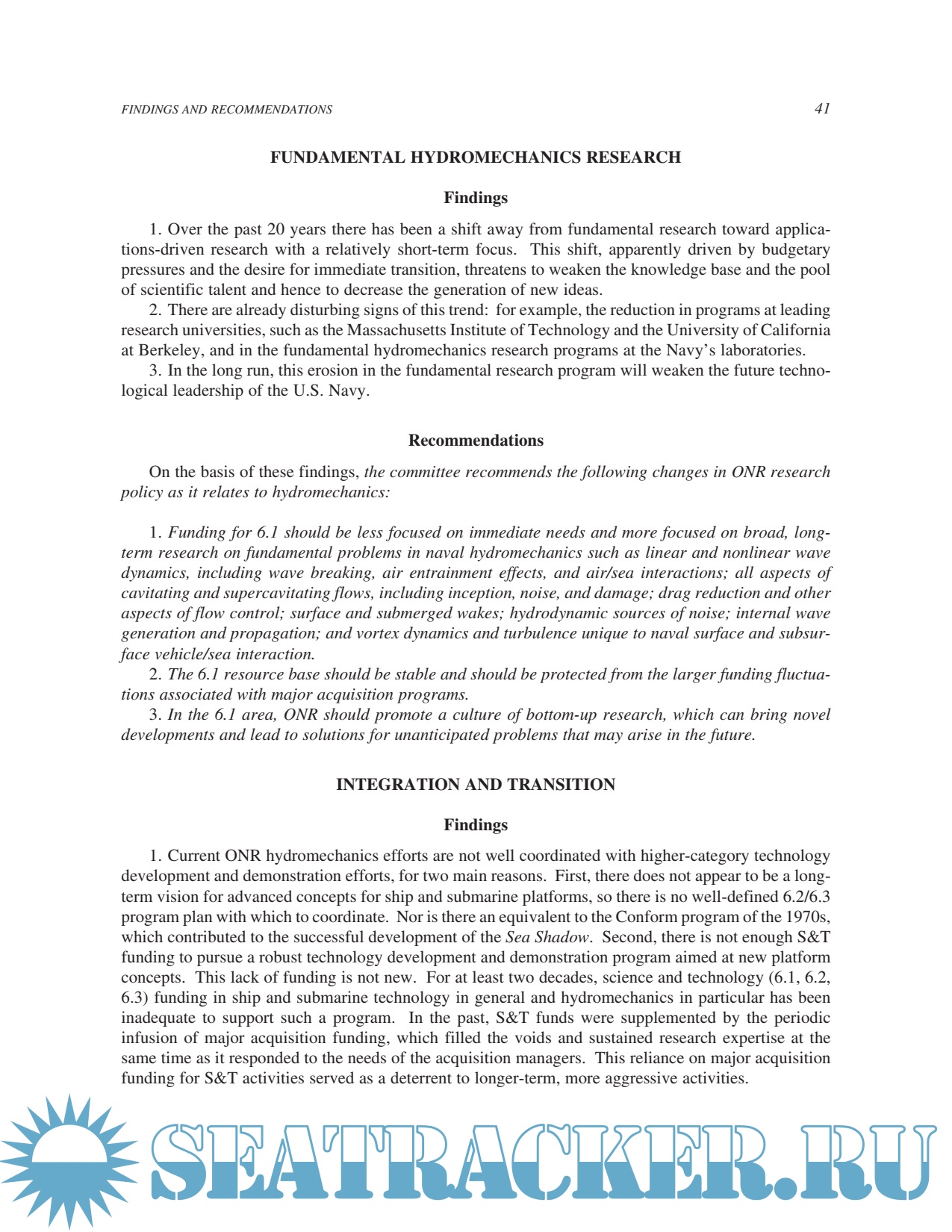 Table of Contents Front Matter Executive Summary 1 Introduction 2 Trends and Emphasis 3 Technology Issues 4 Infrastructure 5 Integration with and Transition to Higher-Budget-Category Programs 6 Findings and Recommendations Appendix A: Research Facilities and Equipment for Naval Hydromechanics Technology Appendix B: Meeting Agenda Appendix C: Committee Biographies Appendix D: Acronyms and Abbreviations