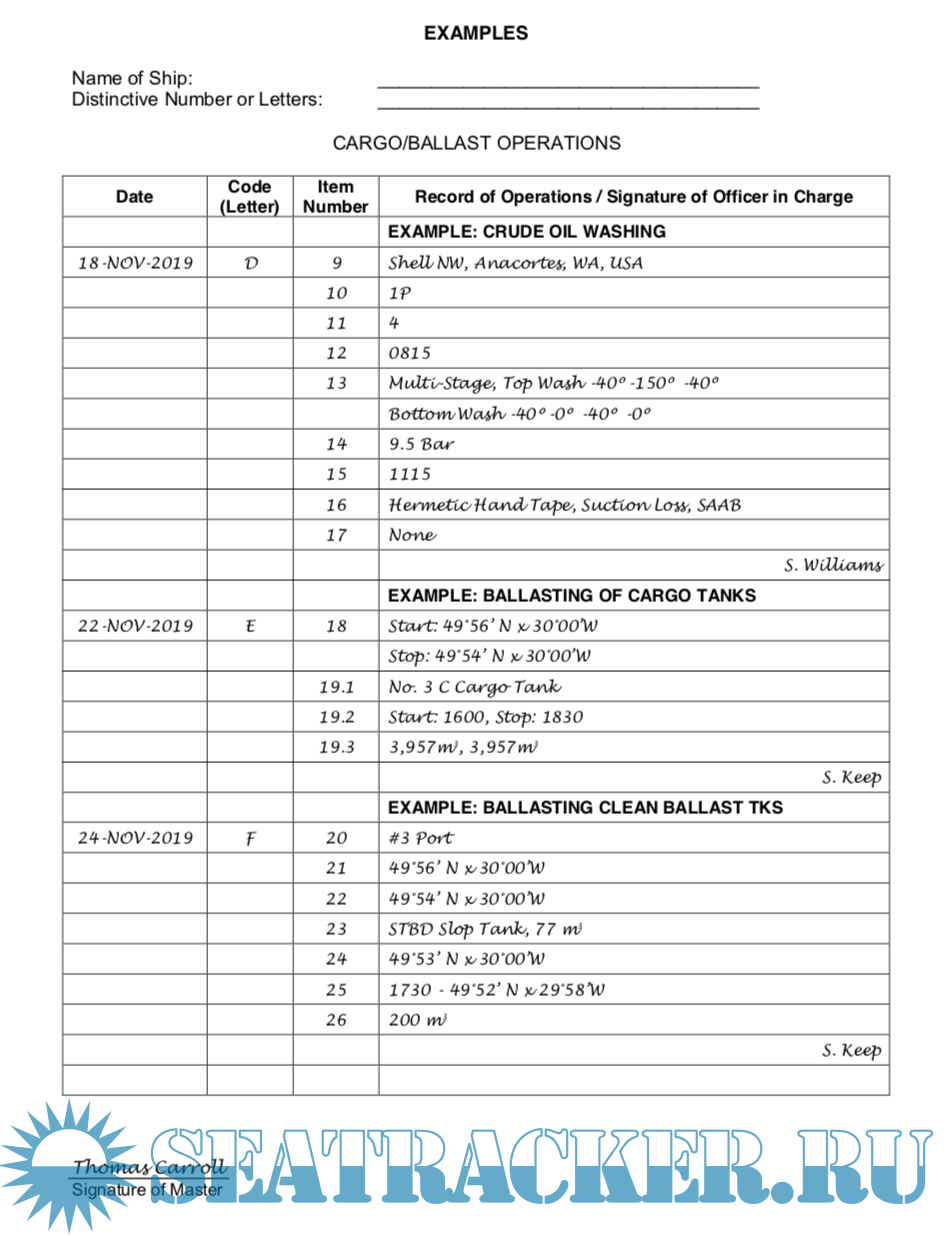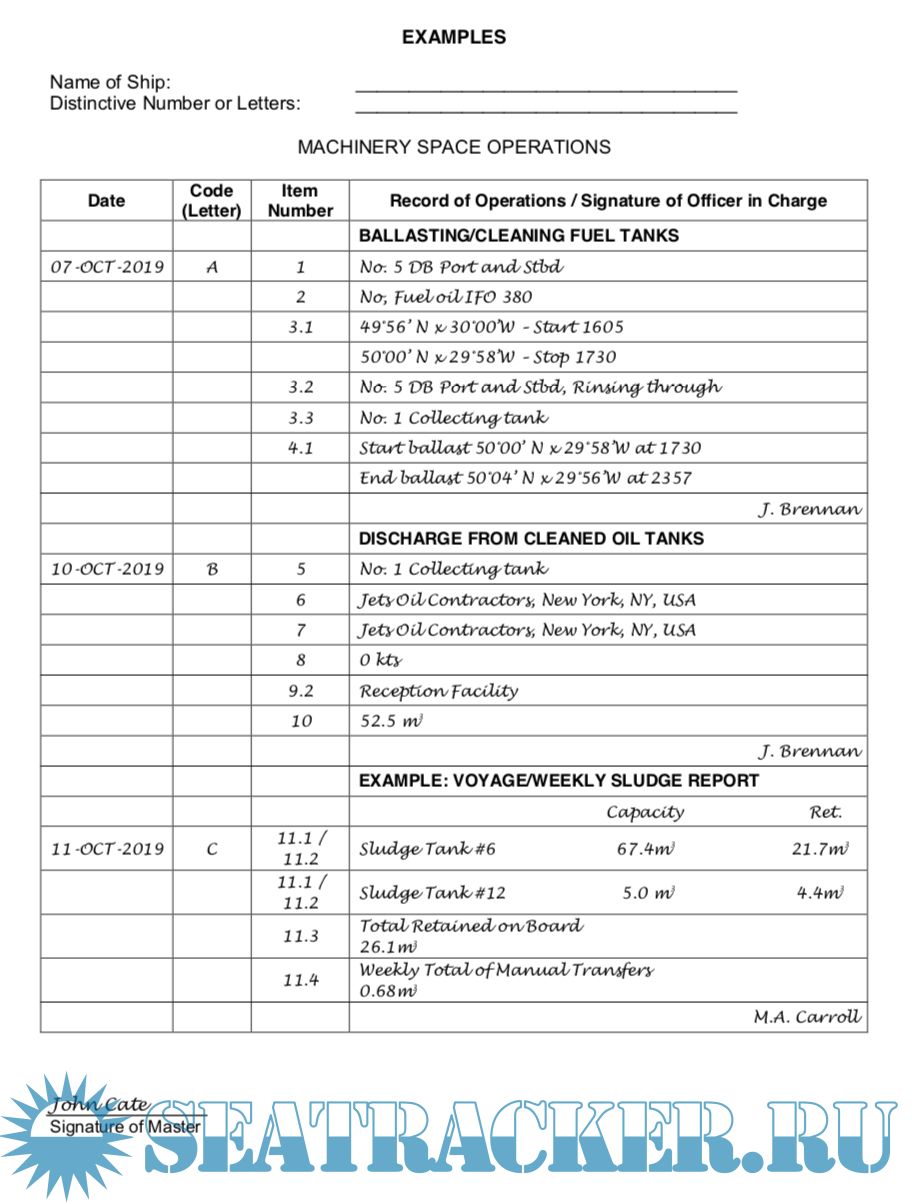 Oil record book, part II, examples