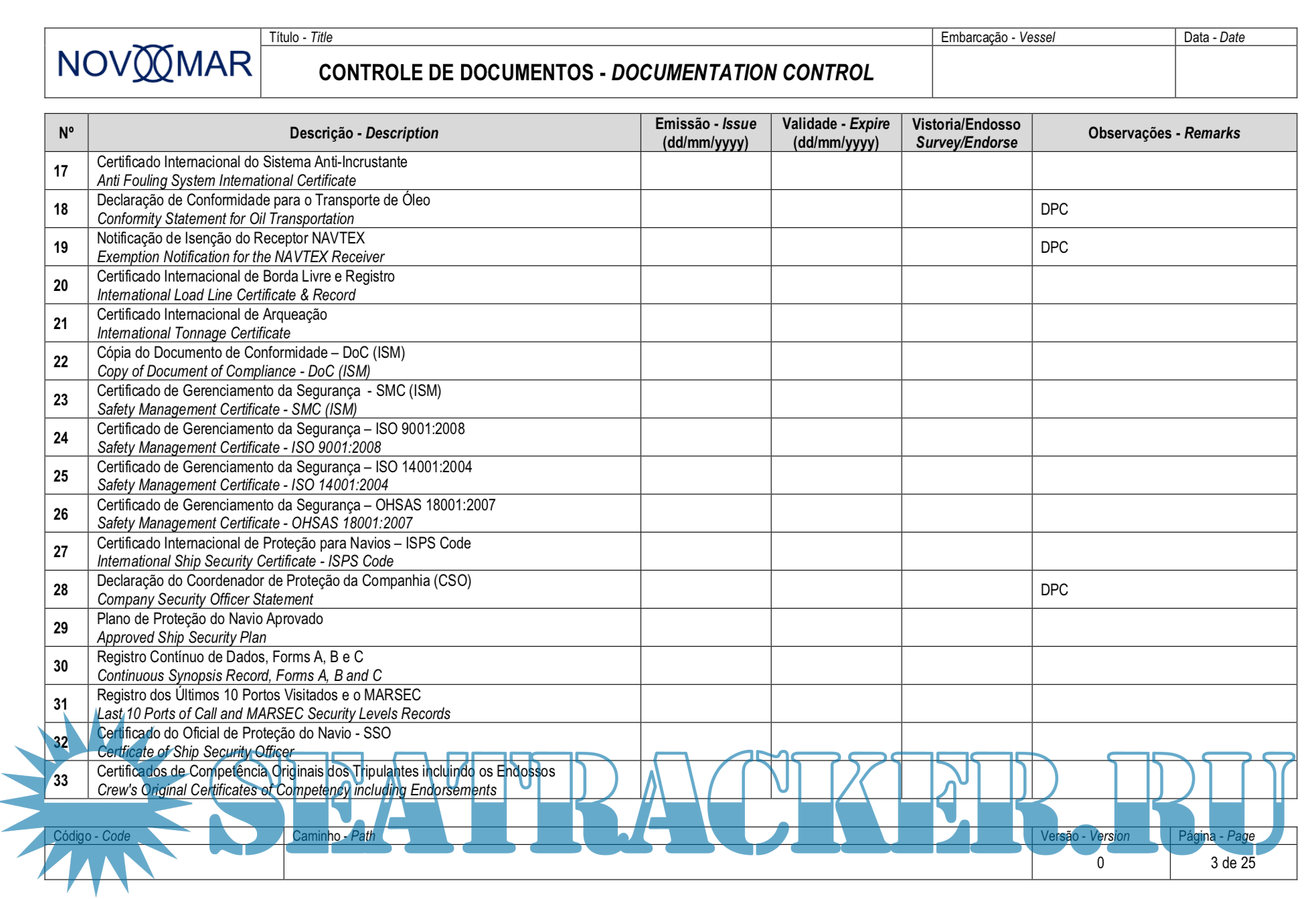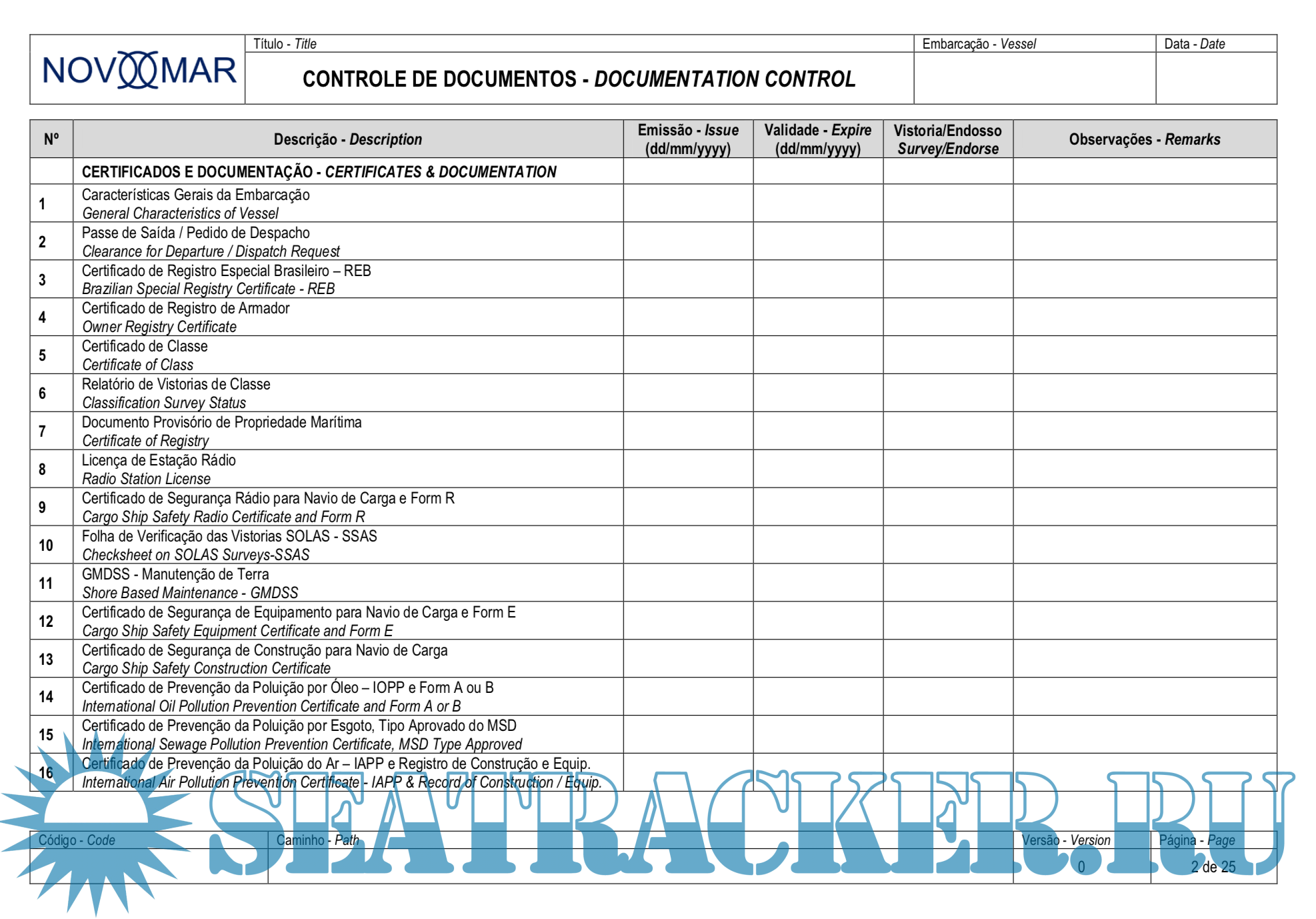 Cargo Record Book (For Ships Carrying Noxious Liquid Substances in Bulk) - Novomar Assessoria…