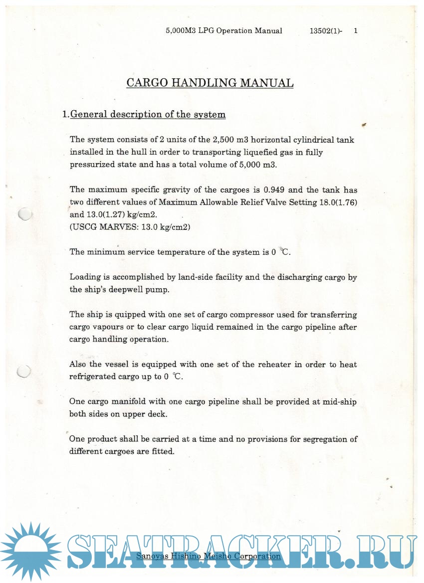CARGO HANDLING MANUAL 1. GENERAL DESCRIPTION OF THE SYSTEM 2. PRODUCTS 3.CARGO TANK AND HANDLING EQUIPMENT 4, INTERTING AND PURGING 5.CARGO HANDLING OPERATION 6. MANUAL FOR HANDLING CARGO TANKS AND EQUIPMENTS 7. INFORMATION ON CARGOES