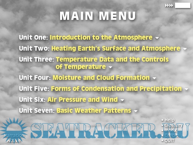 Educational interactive application designed for introductory Earth Science courses in departments of Geology, Geography, and Atmospheric Science. The program provides visual and audio learning materials that help students understand fundamental atmospheric processes through animations, narration, and integrated video content.