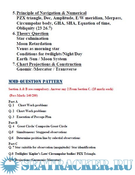 As per syllabus prescribed by Mercantile Marine Department, India for the written examinations of Chief Mates (F.G.) Phase I & II.