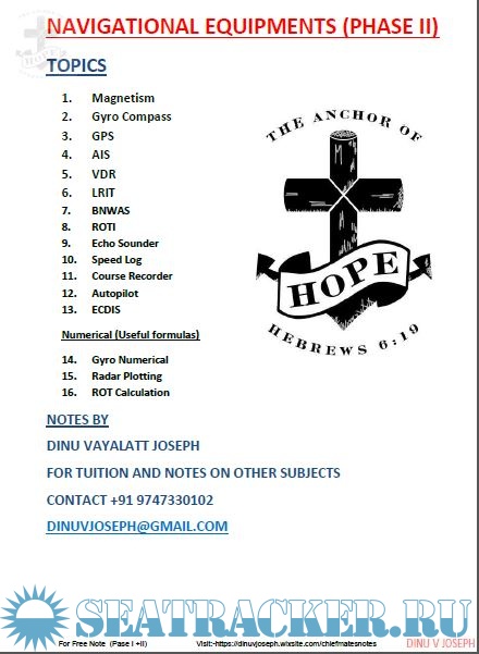 Notes on Bridge Watchkeeping, Cargo Work, Marine Engineering, Maritime Law, Meteorology, Navigation, Navigational Equipments, Safety, Emergency & Stability