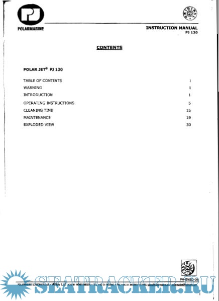 Year: 20xx Language: english Author: Polar Marine Genre: Manual Publisher: Polar Marine Format: PDF Quality: Scanned pages Pages count: 37 Description: The Polar Jet PJ 120 is a deck mounted fully programmable, single nozzle Tank cleaning machine equipped with pitch, speed nad angle limit controls.