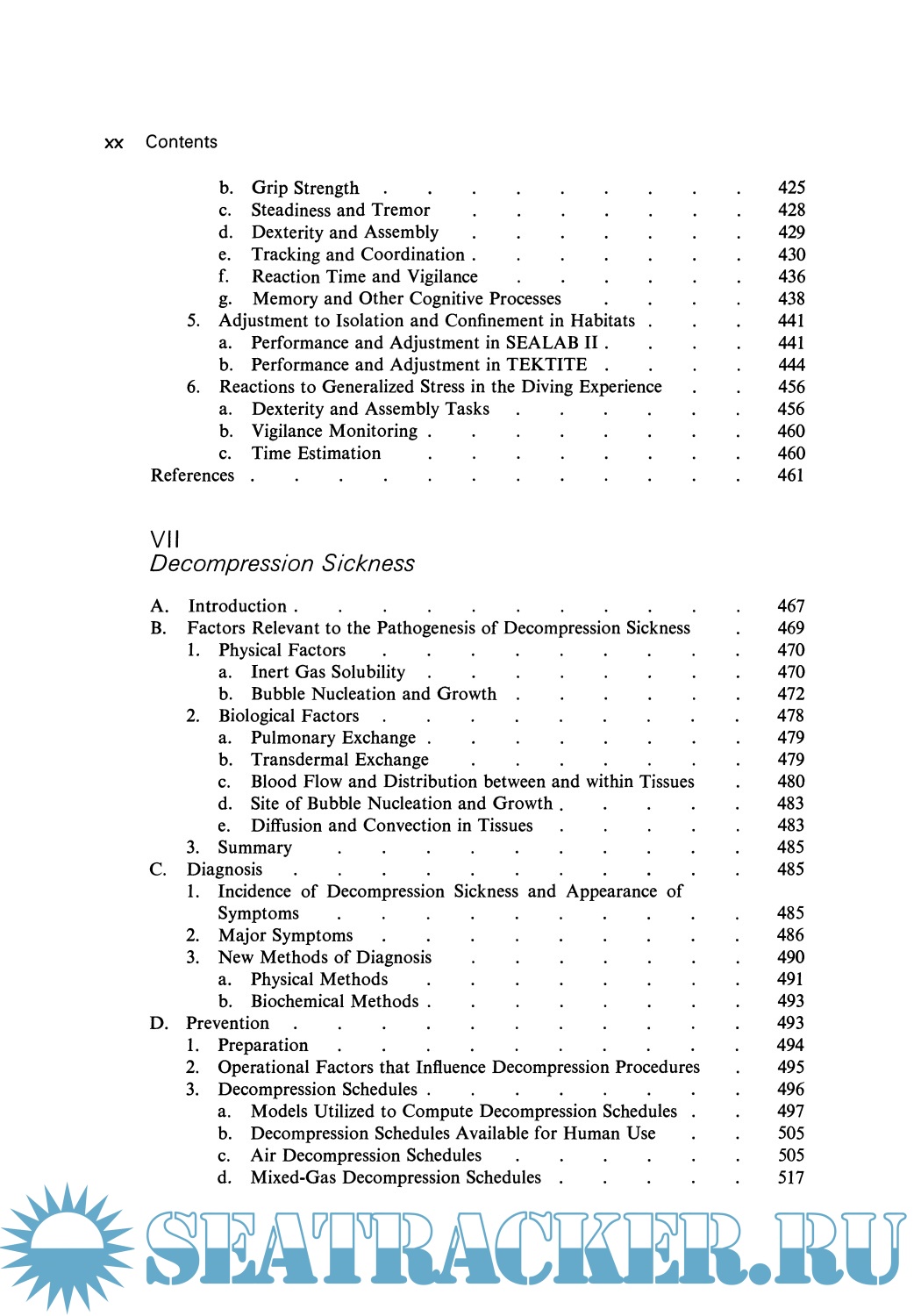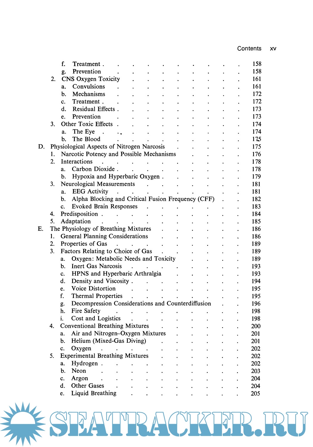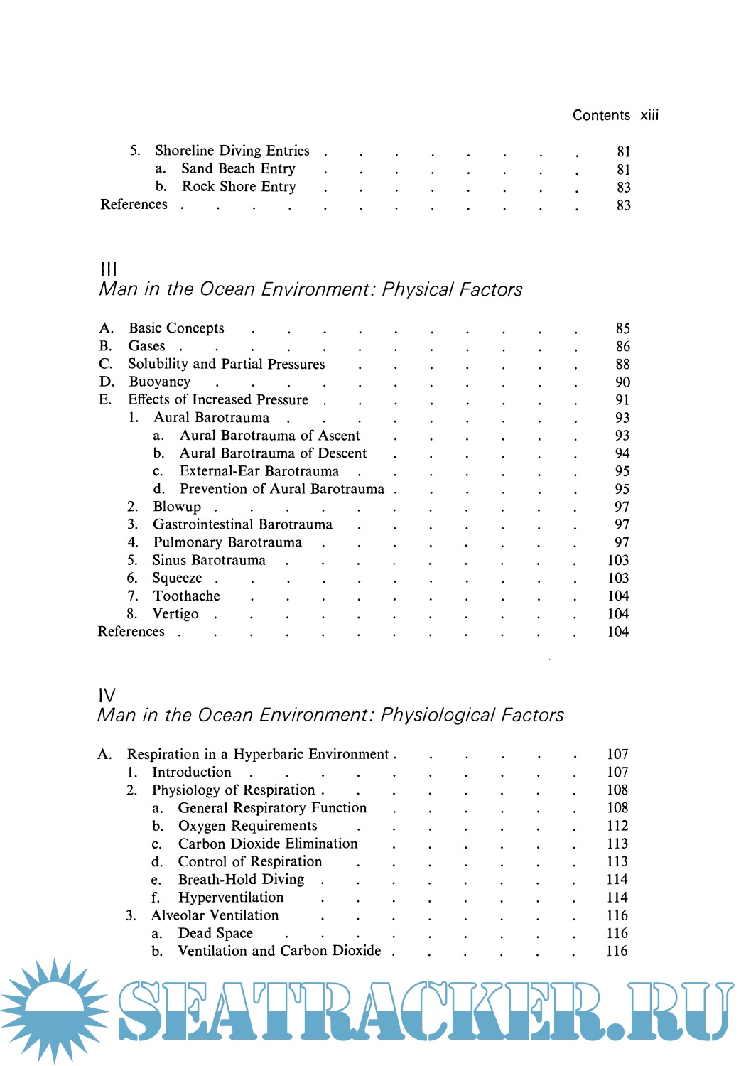 Year: 1976 Language: english Author: Shilling C.W. at all Genre: Handbook Publisher: Springer ISBN: 1468421565 Format: PDF Quality: Scanned pages Pages count: 929 Description: This handbook attempts to translate data on various parameters of man's capability in underwater and hyperbaric environments for those without a background in the life sciences. Accomplishing any multifaceted task requires team work, and effective team work depends on facile communication among all participants. To communicate properly, all parties must understand each other's problems and be able to speak a similar language. To this end we believe that this publication will go a long way in furthering the understanding and communication necessary for maximum achievement. The U. S. Navy has a fundamental interest in all types of activities connected with the ocean and is especially interested in the growing field of manned underwater and hyperbaric activities. Thus, the manuscript for this comprehensive book was developed under Office of Naval Research contract N00014-67-A-0214-0013 with The George Washington University. We acknowledge with appreciation the financial support and technical guidance for this undertaking by the Naval Medical Research and Develop ment Command of the Bureau of Medicine and Surgery as well as by the Engineering Psychology Program and the Physiology Program of the Office of Naval Research. JOSEPH P. POLLARD Director Biological and Medical Sciences Division Office of Naval Research vii Preface A need was felt for a book that would document the relationship of the human being to the underwater hyperbaric environment in such a way that the individual unfamiliar with the psychological or biomedical jargon could still understand and appreciate the information.