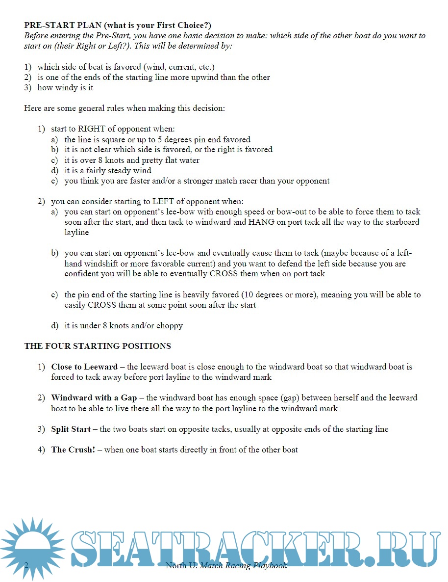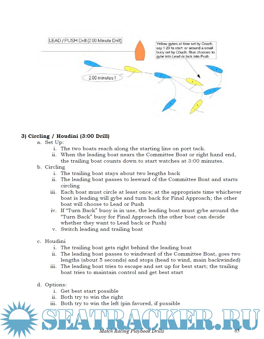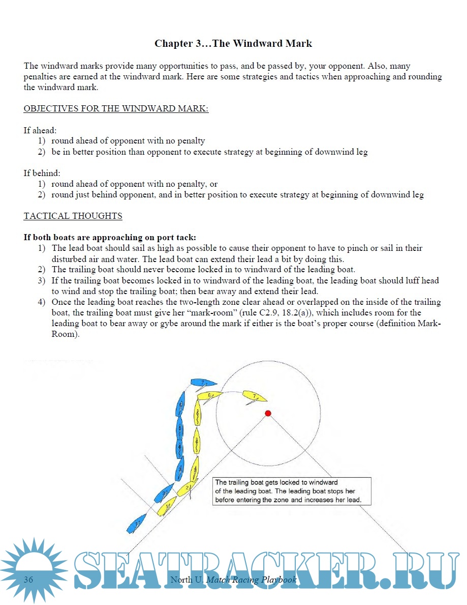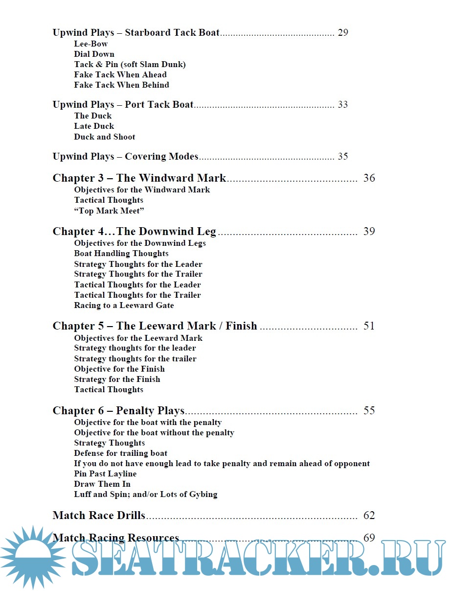 Match racing is an exciting game in which just two boats race against each other at a time. America's cup, for instance, is a match race between the Defender, of the yacht club that holds the cup, and the Challenger. This text provides racing highlights on boat handling, timing and positioning, as well as the traditional tactics and strategies of fleet racing. Match race improves skills and reaction time, as well as knoweledge of tactical situations. However, match racing involves some tactics and strategies that are not commonly used in fleet racing, particularly at the start, on the downwind legs, and when one of the boats has a penalty.