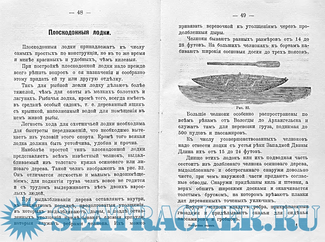 Год выпуска: 1913 Язык: русский Автор: Федоров П.А. Жанр: Руководство Издательство: книгоиздательство А.Ф. Сухова Формат: DjVu Качество: Отсканированные страницы Количество страниц: 104 Описание: Петр Акимович Федоров был инженером-технологом, чрезвычайно широко эрудированным в различных ремеслах и производствах, их технологиях и инструментарии. Он был невероятно плодовит как писатель: несколько раз в год выходили его брошюры и книги, посвященные какому-либо производству или ремеслу (кузнечному, столярному, слесарному, бочарному и многим другим). Автор обращался к темам актуальным – устройство домашнего хозяйства, домашнее ремесло, виды производств, способные приносить стабильный доход при небольших вложениях. При составлении руководства по строительству лодок автор опирался на классическое английское, составленное в 1880 г. Адрианом Нейсоном и являвшееся одной из лучших в своей области книг. В книге П.А. Федорова рассмотрены технологии строительства лодок разных типов: лодок грузовых и пассажирских, предназначенных для плавания по рекам и каналам; вспомогательных лодок при морских и речных судах; лодок для катания и спортивных; специальных спасательных плавучих средств. Лодки разделяются на плоскодонные и килевые. Автор изучает материалы, наиболее пригодные для их строительства, инструменты, общие приемы судостроительных работ. Среди разновидностей лодок представлены и спасательные, переносные, ходящие под парусом. Рассказывается о парусных снастях. К изданию прилагалась большая таблица с изображениями лодок различных типов и их частей.