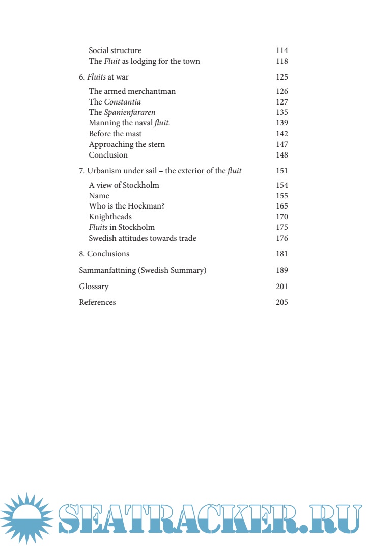 Year: 2014 Language: english Author: Eriksson N. Genre: History Publisher: Södertörn University ISBN: 978-9187843020 Format: PDF Quality: Scanned pages Pages count: 233 Description: In the seventeenth- and early eighteenth centuries, fluits were the most common type of merchant ship used in Baltic trade. Originally a Dutch design, the majority of all goods transported between Sweden and the Republic was carried on board such vessels. Far from all voyages reached their destination. Down in the cold brackish water of the Baltic, the preservation conditions are optimal, and several of these unfortunate vessels remain nearly intact today. Although thousands of more or less identical fluits were built, surprisingly little is known about the arrangement of space on board, their sculptural embellishment and other aspects that formed the physical component of everyday life on and alongside these ships. Fluits were a fixture in early modern society, so numerous that they became almost invisible. The study of wrecks thus holds great potential for revealing vital components of early modern life. Inspired by phenomenological approaches in archaeology, this thesis aims to focus on the lived experience of fluits. It sets out to grasp for seemingly mundane everyday activities relating to these ships, from the physical arrangements for eating, sleeping and answering nature’s call, to their rearrangement for naval use, and ends with a consideration of the architectonical contribution of the fluit to the urban landscape.