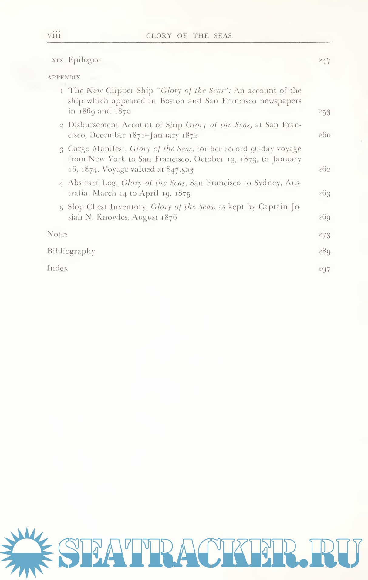 He pays full attention to the outstanding men who were her masters: hard-driving John Giet; Josiah Knowles from Cape Cod, under whom Glory made record runs from New York to the Golden Gate and again from San Francisco to Australia; Daniel McLaughlin, the “bluenose” from Nova Scotia; Joshua Freeman, who commanded her on eighty-one voyages over eighteen years.