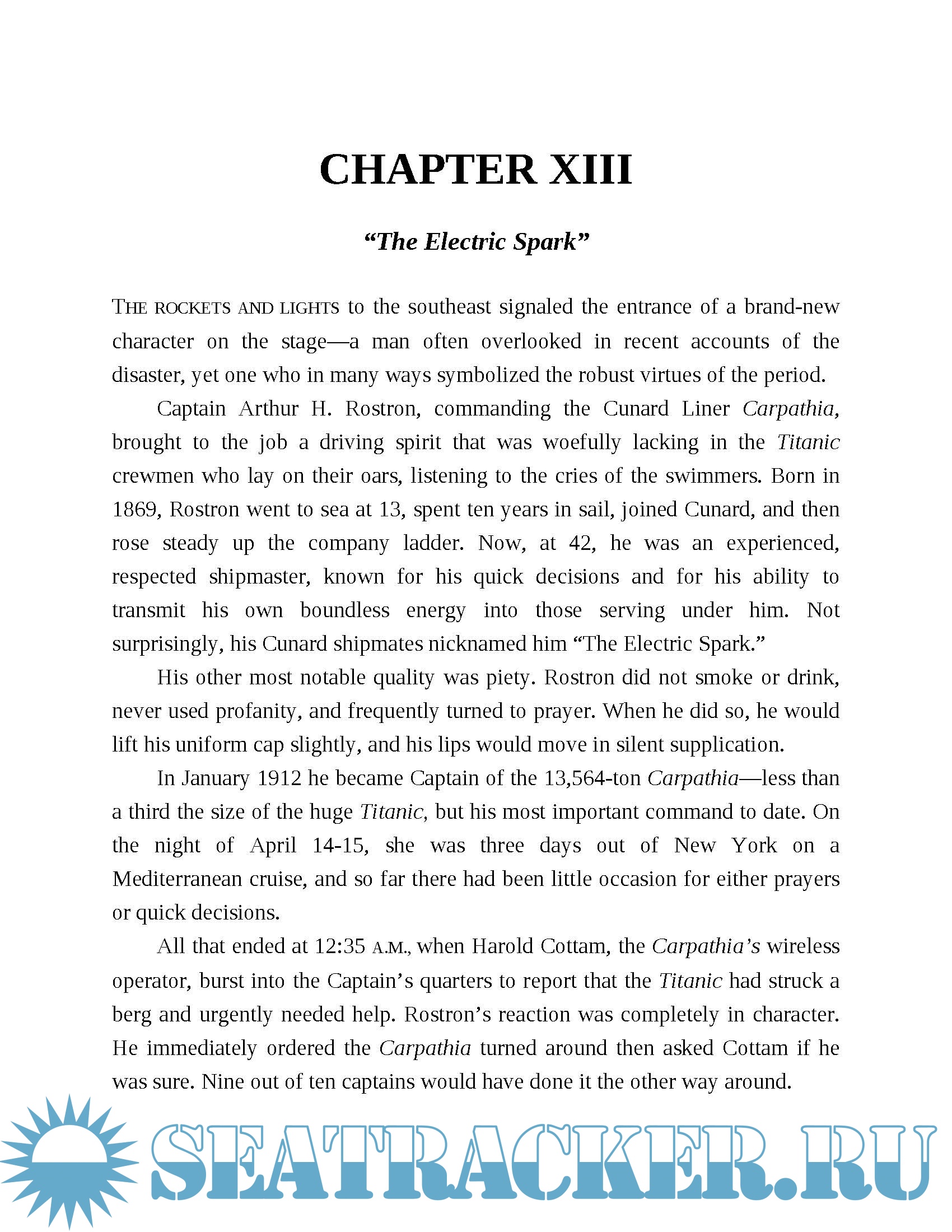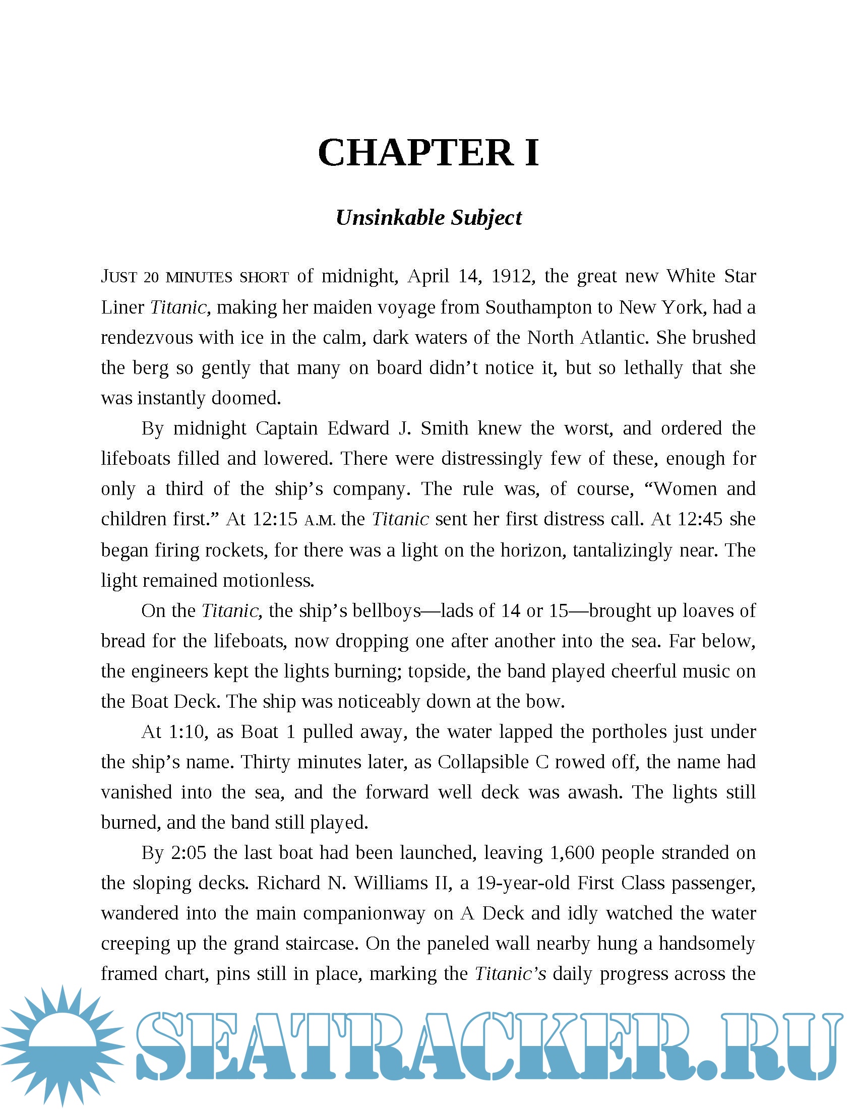 Was the ship really christened before setting sail on its maiden voyage? What song did the band play as water spilled over the bow? How did the ship’s wireless operators fail so badly, and why did the nearby Californian, just ten miles away when the Titanic struck the iceberg, not come to the rescue? Lord answers these questions and more, in a gripping investigation of the night when approximately 1,500 victims were lost to the sea.