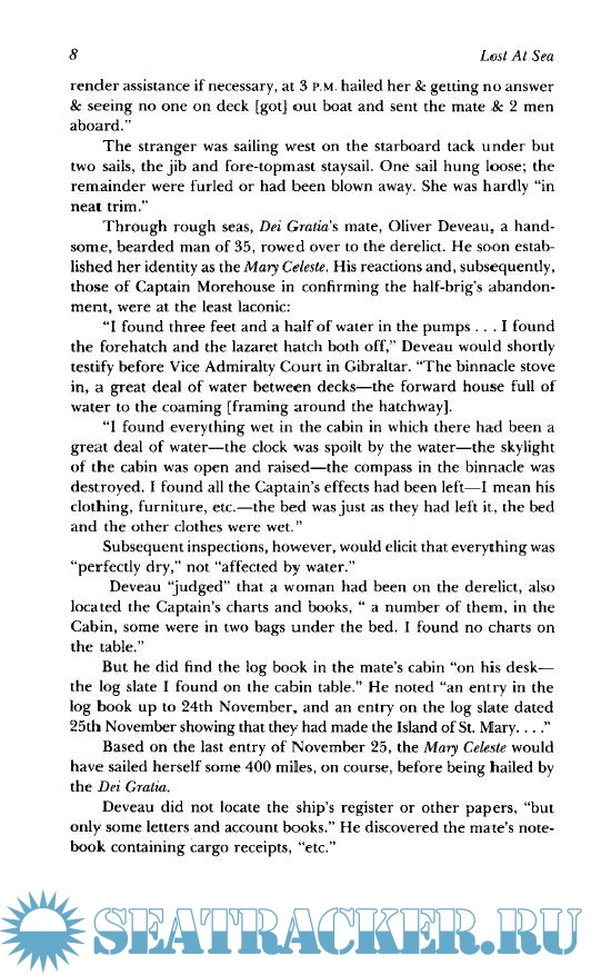 Reading his book is fascinating as the stories included in it. He examines the history of eight great ships that either vanished, or were unaccountably abandoned without a clue.