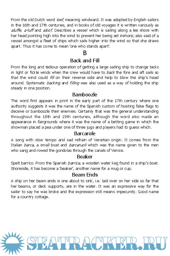 Year: 2007 Language: english Author: Beavis B., McCloskey R.G. Genre: Dictionary Publisher: Bloomsbury Publishing;Adlard Coles ISBN: 0713687495 Format: EPUB Quality: eBook Pages count: 96 Description: Most of us never realise how many words and expressions used in everyday English have a nautical origin. This fascinating and charming pocket book explains the seafaring beginnings of over 200 such phrases - colourful, bizarre and surprising - and how they came ashore. Just a few examples are: Chock-a-block Chance your arm Money for old rope Spic and span Push the boat out At close quartersThis entertaining book has been a popular title for boaters and landlubbers alike, ever since first publication in 1983. 'Good fun' Yachts and Yachting 'Entertaining, informative, educational and lots of fun' Multihull International 'An entertaining and informative little book' Motor Boats Monthly