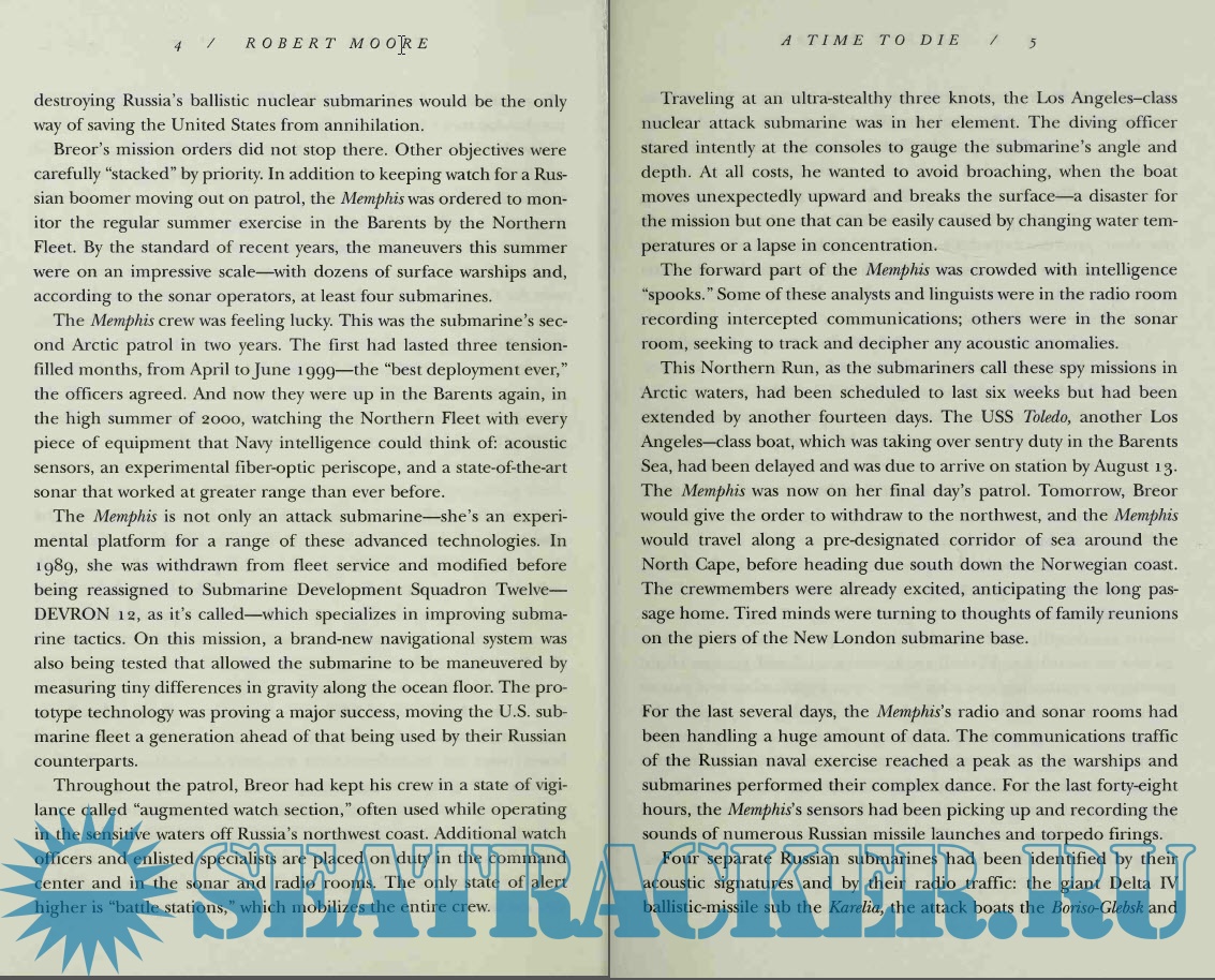 In A Time to Die, a critically acclaimed best-seller in the United Kingdom, international reporter Robert Moore—who covered the Kursk tragedy from Russia as it happened—draws on exclusive access he obtained to top Russian military figures in telling the inside story of the disaster with the factual depth of the best journalism and the compelling moment-by-moment tension of a thriller. He takes us right down inside the Kursk as two massive explosions—the second measuring 3.5 on the Richter scale—rip through compartment after compartment. Bringing the horror of the explosions vividly to life, he details the agonizing drama of the twenty-three men who survived as they fight against time to be rescued.