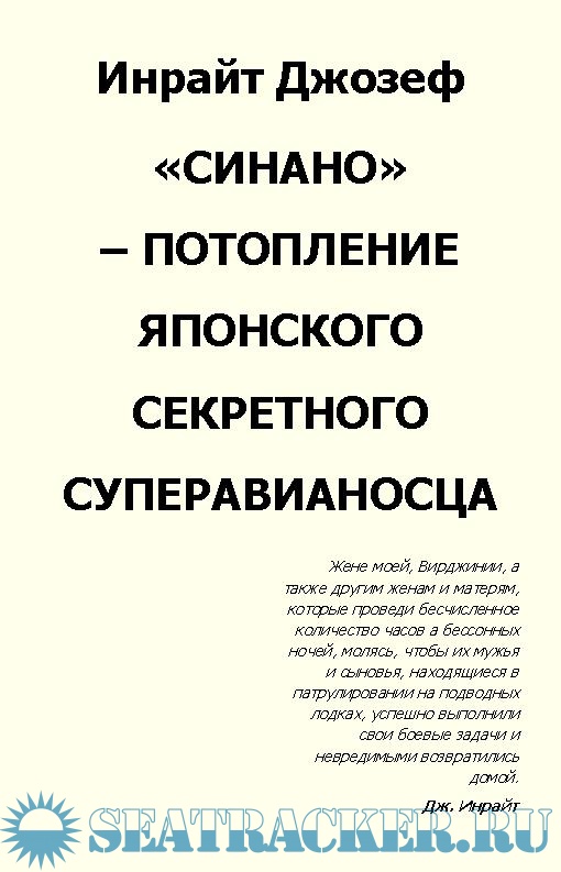 Описание: В публицистической книге Джозефа Инрайта рассказывается о потоплении в конце второй мировой войны американской подводной лодкой, которой командовал автор, японского суперавианосца «Синано».