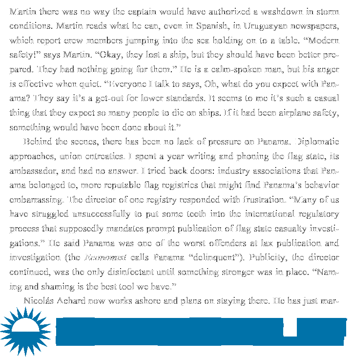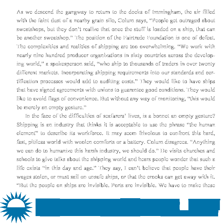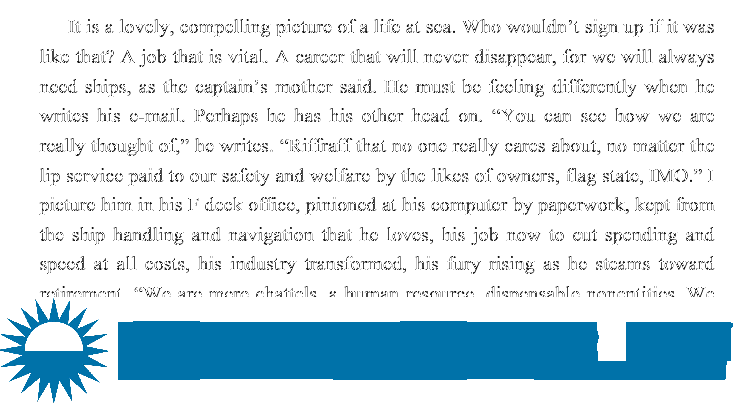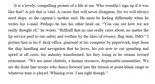 George's critique of the shipping industry and its impact on seafarers and the environment focuses on comparing conditions in 2010 to the recent past. She offers data from 2009-11, but no solutions for the future.