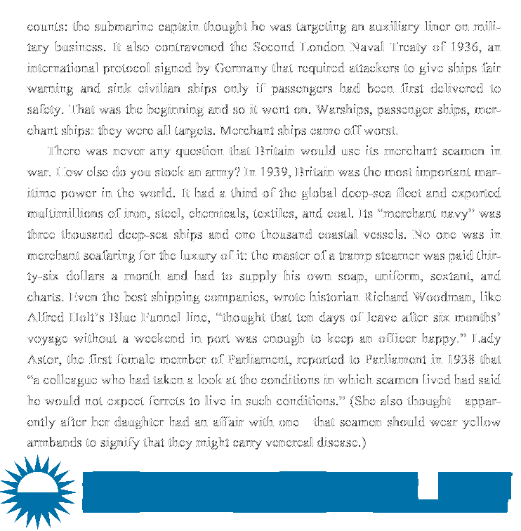 Year: 2013 Language: english Author: Rose George Genre: History Publisher: Metropolitan Books: Henry Holt and Company Edition: First ISBN: 9780805096040 Format: EPUB Quality: eBook Pages count: 304 Description: Rose George is a freelance investigative journalist who aims to expose what is invisible, ignored, and taken for granted. George refined her investigative approach in her second book project, when she investigated the global public health crisis of human sewage. She identified what was ignored but important, focused on key relevant data, and analysed the problems. For her third book project, George looked at the working conditions of seafarers, the disappearance of national merchant marines, and the economic disaster that is the shipping industry in the 21st century. In 2010 George was writer-in-residence with Maersk Line, sailing on Maersk Kendal (LOA 299 m; 6,500 TEU; UK-flagged) from Felixstowe to Port Klang. She also spent a week on Portuguese frigate Vasco da Gama (LOA 142 m; 100 mm cannon, plus missiles and torpedoes) on anti-pirate duty and talked to the Mission to Seafarers in Immingham and the International Transport Workers Federation (ITF) at Birkenhead. Ninety percent of everything, George's third book, was also published in Britain under the name Deep Sea and Foreign Going: Inside shipping, the invisible industry that brings you ninety percent of everything. George's critique of the shipping industry and its impact on seafarers and the environment focuses on comparing conditions in 2010 to the recent past. She offers data from 2009-11, but no solutions for the future. Metropolitian residents are blind to shipping, even though ships carry 90 percent of goods because they're cheaper and less environmentally damaging than trucks on highways. Cargo wharves have been moved out of city centres, so ships are out of sight, out of mind, and out of the imagination of most. The shipping news disappeared from mainstream media decades back, the names and sizes of ships are seldom mentioned, and the impact of piracy only mentioned in movies and after intense events. The national merchant marine fleets that served maritime nations in times of past wars have all but disappeared, replaced by commercial operations running on thin margins with multinational crew on short-term contracts. Flags of convenience dominate, flying over 68 percent of hulls. Costs have driven the change to flags of convenience: a US flag would multiply the cost of sailing under a flag of convenience 2.7 times. Chasing profit, even thin profit, has led to exploitation of seafarers and environmental damage. Cheap bunker fuel and its sooty exhaust, and propeller noise, have had measurable effects. Exploitation of seafarers is an old story, but one that continues. Shorthanded crew are fatigued and overworked. Even Maersk Line ships only budgeted (in 2010) US$7 a day for the meals of each crew. In 2009, delinquent ship-owners abandoned 57 ships and their 647 seafarers. Only the ITF and well-meaning charities and trusts do anything significant to help. Of the 4 million seafarers, more than 30 percent are Filipino because of their good English and low cost, and only 2 percent are female. About 2,000 seafarers die each year.