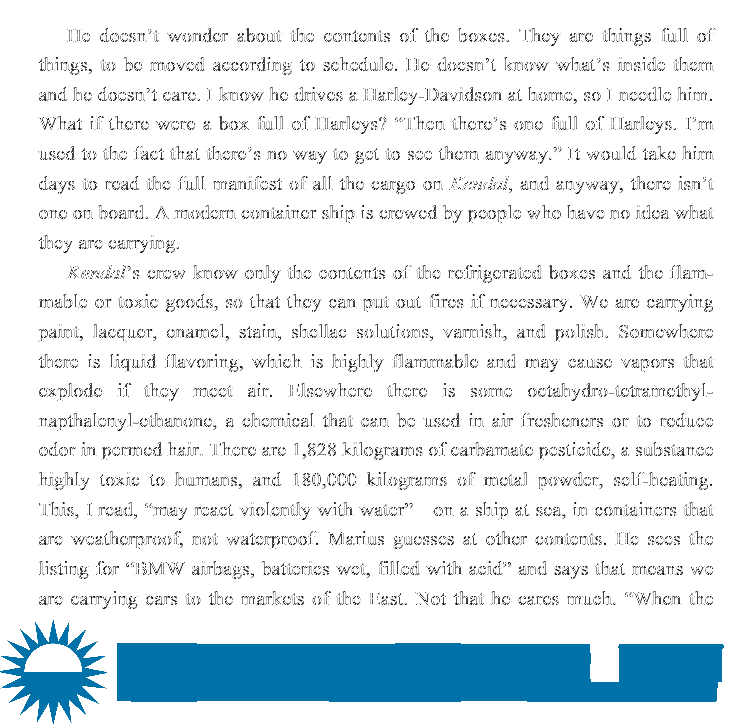 Introduction 1. Embarkation 2. Aboard 3. Harbor 4. Open Sea 5. Sea and Suez 6. High-Risk Area 7. No-Man’s-Land 8. Sanctuary 9. Animals Beneath 10. Rescue 11. Disembark Notes Further Reading Acknowledgments