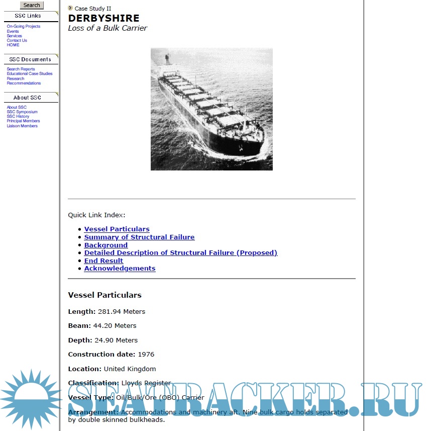 Description: Derbyshire Sinking Study and Investigation into the loss of the vessel.