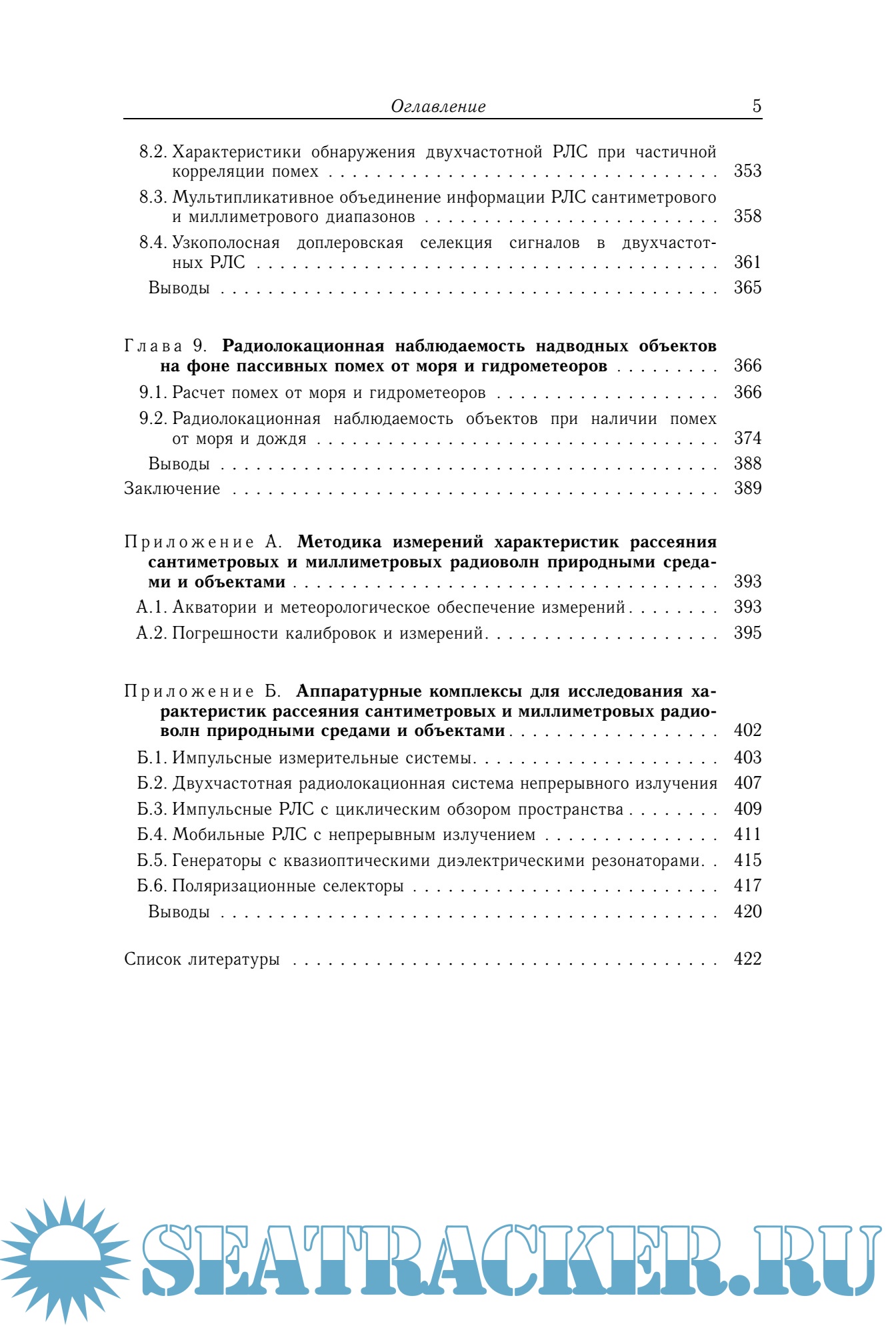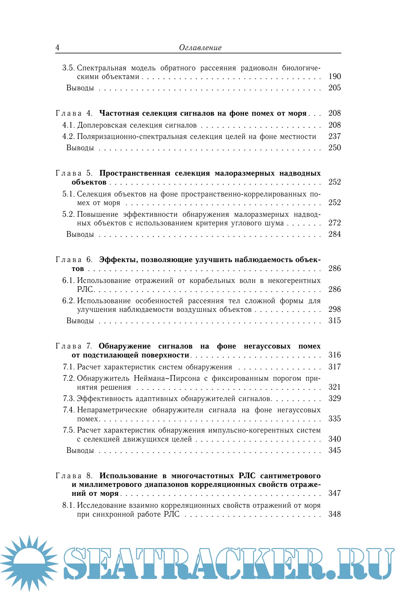 Описание: В монографии рассмотрено решение проблемы обнаружения малоскоростных малоразмерных объектов на фоне пассивных помех от морской поверхности. Приведены характеристики обратного рассеяния радиоволн морем, надводными объектами в сантиметровом и миллиметровом диапазонах волн, необходимые для разработки перспективных РЛС освещения надводной обстановки, анализа технических характеристик существующих систем. Использованы новые методы описания негауссовых процессов с использованием финитных атомарных функций Кравченко. Предложена статистическая модель рассеянного морем, участками суши с растительностью сигнала, которая учитывает его нестационарный характер. Установлены особенности обратного рассеяния морскими волнами и надводными объектами и на их основе предложены методы селекции и обнаружения малоскоростных, малоразмерных объектов на фоне моря. Рассмотрены методы оценки характеристик радиотехнических систем в условиях влияния на них нестационарных негауссовых помех. Книга предназначена главным образом для научных работников и специалистов, занимающихся исследованиями обратного рассеяния радиоволн природными средами и антропогенными образованиями, в том числе работающих в области миллиметровой радиолокации. Она полезна для студентов и преподавателей соответствующих учебных заведений