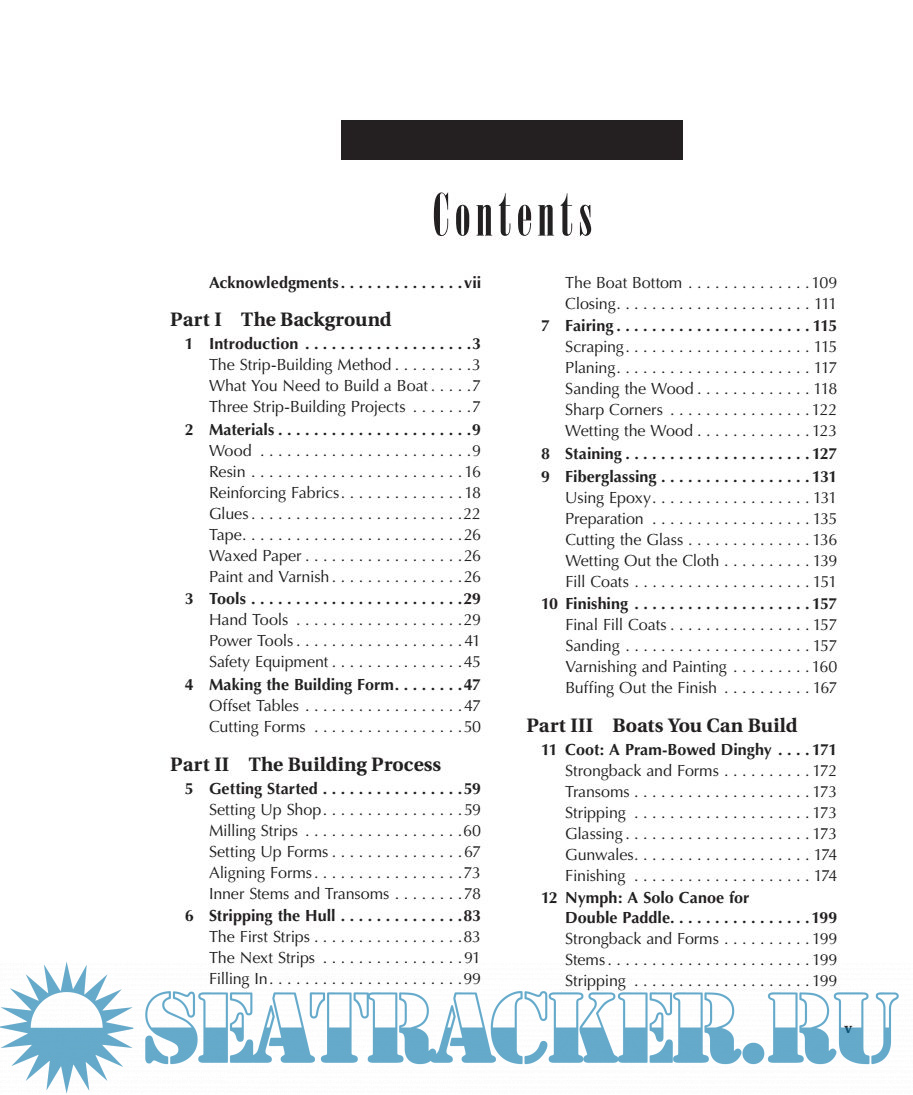 Year: 2009 Language: english Author: Nick Schade Genre: Practical guide Publisher: International Marine/McGraw Hill ISBN: 978-0-07-164337-5 Format: PDF Quality: eBook Pages count: 289 Description: This book describes the procedure of building a boat with strips of wood, covering those strips with fiberglass and epoxy and creating a strong, lightweight and beautiful boat from the beginning stages all the way through to completion. It provides instructions to build three very different boat, a pram style dinghy, a small, double-paddle canoe, and a high performance sea kayak. Beyond learning how to build these particular boats, the book provides enough background that you should be able to build just about any small boat using the strip-planked method.