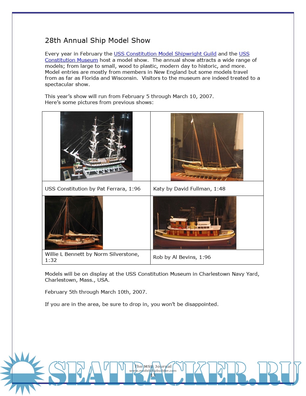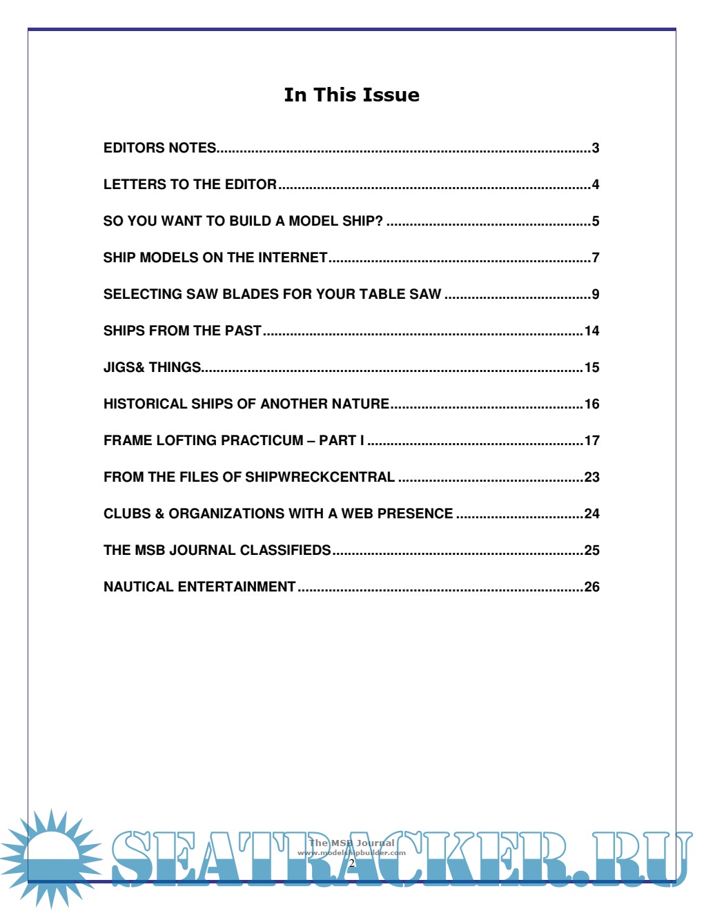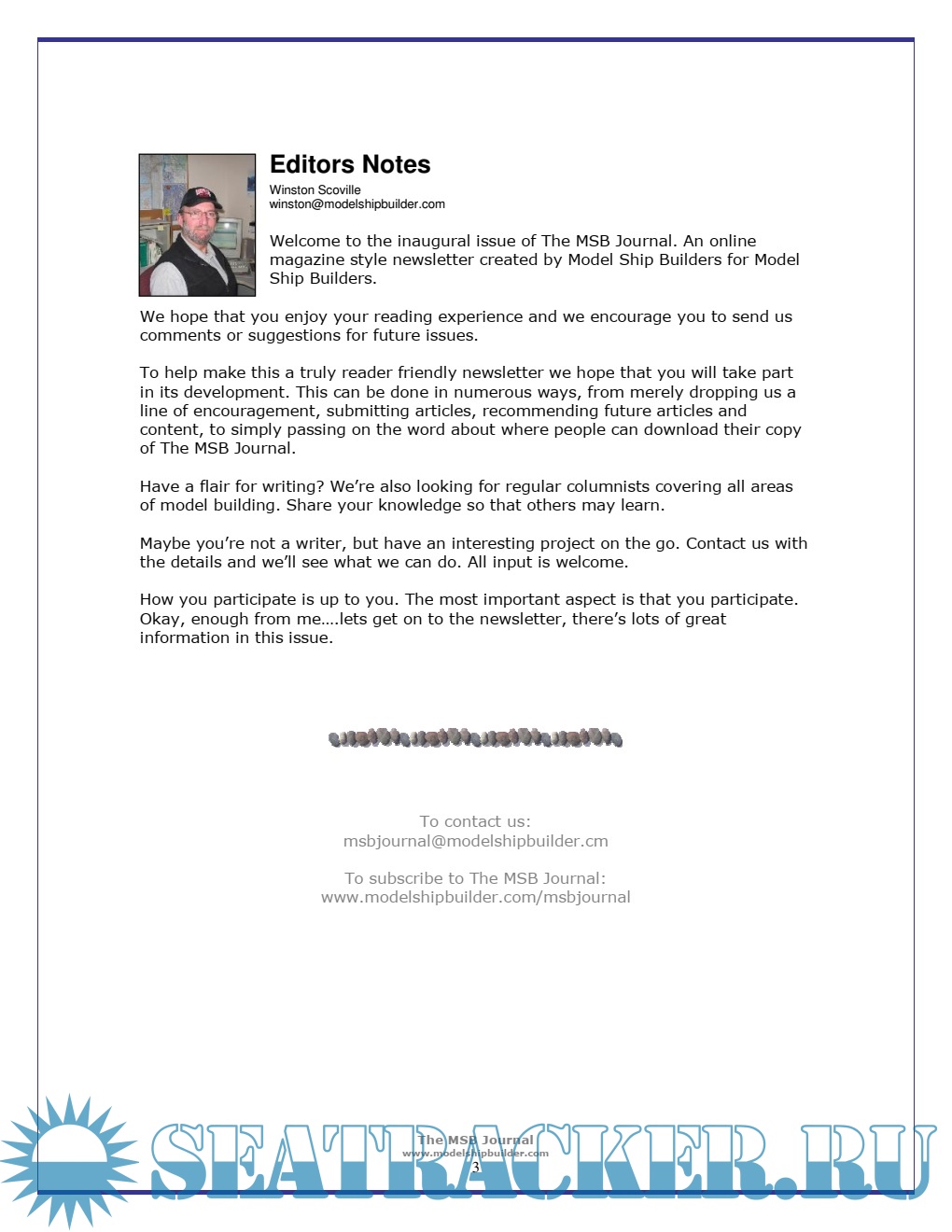 Description: The MSB Journal was first published in March 2007 and described as "An online magazine style newsletter created by Model Ship Builders for Model Ship Builders."
