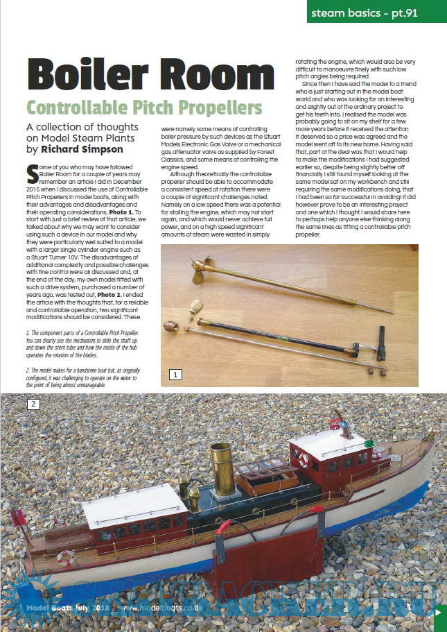 Steam Basics Boiler Room - Controllable Pitch Propellers Scale Musings - Finishes: factory fresh or weather-worn Kit Review - Sea Breeze Part 3 Free Plan - Cruise Ship - Part 2: Superstructure Warship Scale - OSA 2 Fast Missile Boat Part 16 Show Report - Midhurst Modellers 2018 Gallery - Arca Free Plan - Ferret MTB Free Plan - Alpha Part 3 Tall Ships - Sailing square Readers' Models - Tai Koo III Warship Scale - IJN Yamato Part 1 Letters Special Feature - A mystery vintage speedboat Vintage Corner Flotsam & Jetsam - Mabuchi Motors Subs & Submersibles - NR-1 Part 6