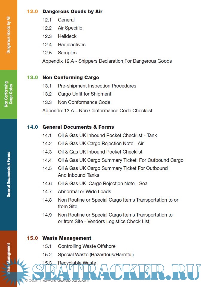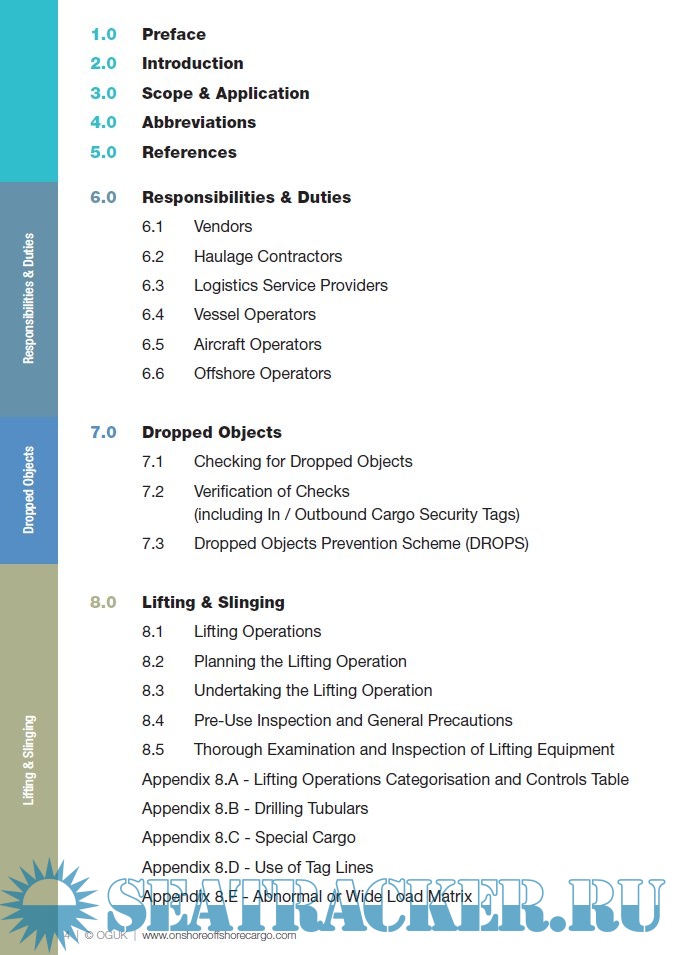 Year: 2015 Language: english Author: Oil & Gas UK Genre: Reference book Publisher: Oil & Gas UK Edition: issue 6 ISBN: 1 903003 32 6 Format: PDF Quality: eBook Pages count: 132 Description: The purpose of this reference book is to assist the personnel involved in the movement of cargo to or from offshore installations. It identifies the hazards associated with the packaging and handling of cargo during normal operations, and to avoid or reduce the associated risks promotes the adoption of best practices as common industry standards. As the safe carriage of goods relies upon the correct packaging, securing, labelling and handling procedures, and all operators are involved, this publication is directed to vendors, haulage contractors, logistics service providers, vessel, aircraft and ofshore operators.