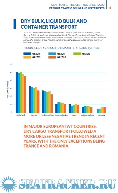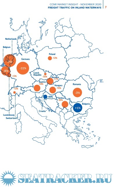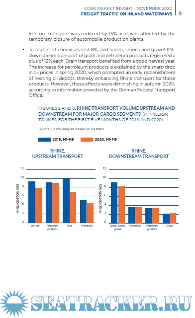 Description: In the first five months of 2020, cargo transport on the Rhine was 11% lower than in the same period in 2019. The Covid-19 crisis had different effects, depending on cargo segments.