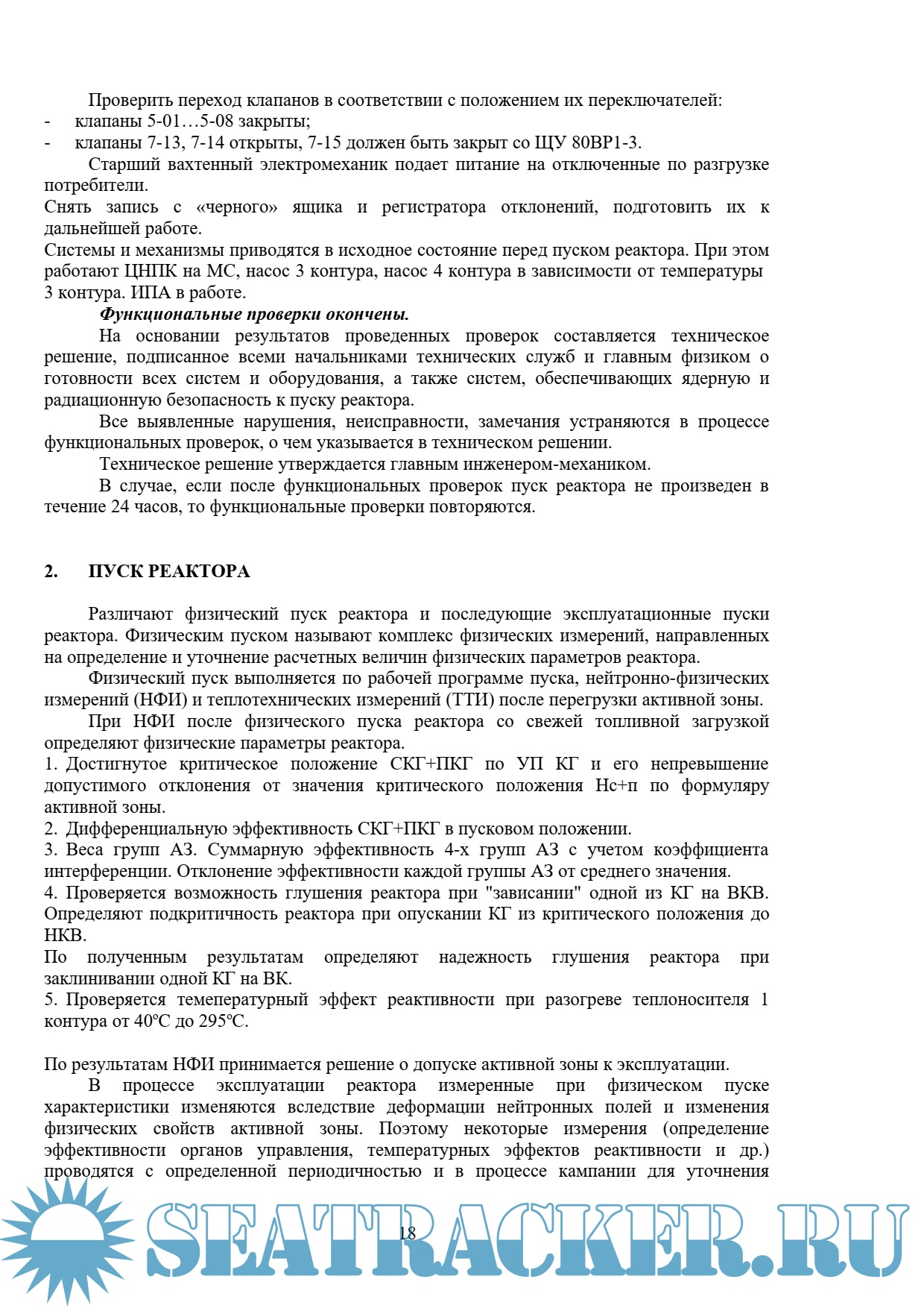 Вопросы эксплуатации реакторной установки рассмотрены с учетом внедренных на ледоколах решений на основании рекомендаций ГУП ОКБМ по оптимизации условий эксплуатации и установлению щадящего режима эксплуатации для обеспечения безаварийной работы и повышения безопасности атомных судов, увеличению ресурса оборудования и систем РУ.