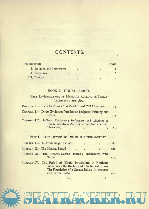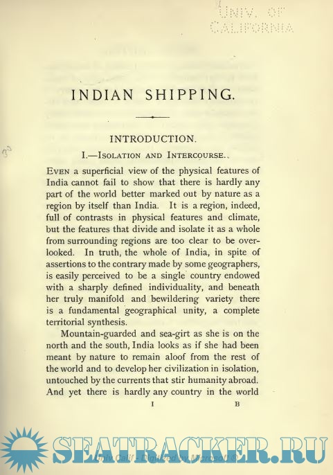 Year: 1912 Language: english Author: Radhakumud Mookerji Publisher: Longmans, Green & Co. Format: PDF Quality: Unknown Pages count: 358 Description: Professor Mookerji's monograph on Indian Shipping and maritime activity, from the earliest times to the end of the Moghul period, gives a connected and comprehensive survey of a most fascinating topic of Indian history. Additional info: Digitized for Microsoft Corporation by the Internet Archive in 2008. From University of California Libraries.