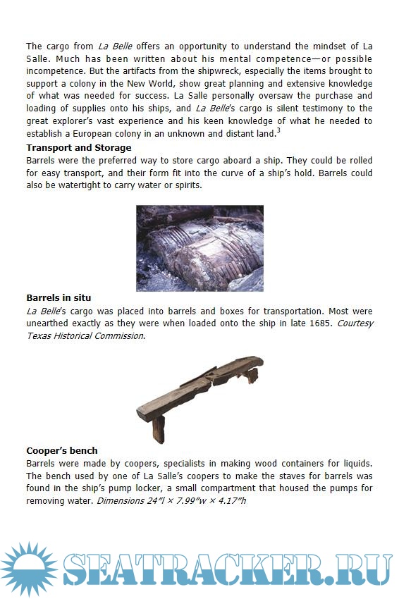 Description: After two decades of searching for La Salle’s lost ship La Belle, Texas Historical Commission (THC) divers in 1995 located a shipwreck containing historic artifacts of European origin in the silty bottom of Matagorda Bay, off the coast of Texas. The first cannon lifted from the waters bore late seventeenth-century French insignias. The ill-fated La Belle had been found.