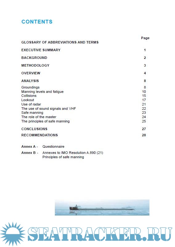 Year: 2004 Language: english Author: Marine Accident Investigation Branch Genre: Textbook Publisher: MAIB Edition: 1 Format: PDF Quality: Unknown Pages count: 52 Description: Extract from The Merchant Shipping (Accident Reporting and Investigation) Regulations 1999 The fundamental purpose of investigating an accident under these Regulations is to determine its circumstances and the cause with the aim of improving the safety of life at sea and the avoidance of accidents in the future. It is not the purpose to apportion liability, nor, except so far as is necessary to achieve the fundamental purpose, to apportion blame Note This report is not written with liability in mind and is not intended to be used in court for the purpose of litigation. It endeavours to identify and analyse the relevant safety issues pertaining to the specific accident, and to make recommendations aimed at preventing similar accidents in the future.
