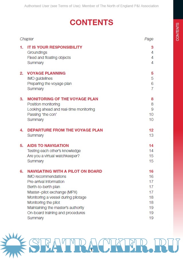 Year: 2015 Language: english Author: North of England P&I Association Genre: Handbook Publisher: North of England P&I Association Format: PDF Quality: eBook Pages count: 43 Description: Groundings and collisions with both fixed or floating objects (FFO) are the most high profile and costly of all maritime accidents. Usually human error remains the most common factor of such accidents. Even if vessel’s navigational systems and procedures are designed to reduce the risk, it is precisely the failure of these procedures that lead to incidents. North is a marine insurer company focused on safety culture and loss prevention, that also provides technical and operational expertise. This guide is designed to bring to the attention of masters and officers the key factors in groundings and FFO incidents, rather than be a textbook on voyage planning and the avoidance of groundings or FFO incidents. It includes suggestions on avoiding the contributory factors and aims to promote an understanding of how the risks can be minimised through following good practice. Real-life case studies are included at the end of most chapters to provide examples of poor practice, considering that is much less costly to learn from the mistakes of others than to learn from our own mistakes. The case studies and the questions they ask are designed to be the starting point for wide-ranging discussions on all aspects of avoiding groundings and FFO incidents. Each case study describes a developing situation and asks a number of questions, without providing the answers. The intention is to encourage the discussion between members of the bridge team.