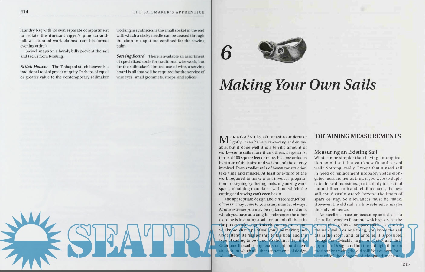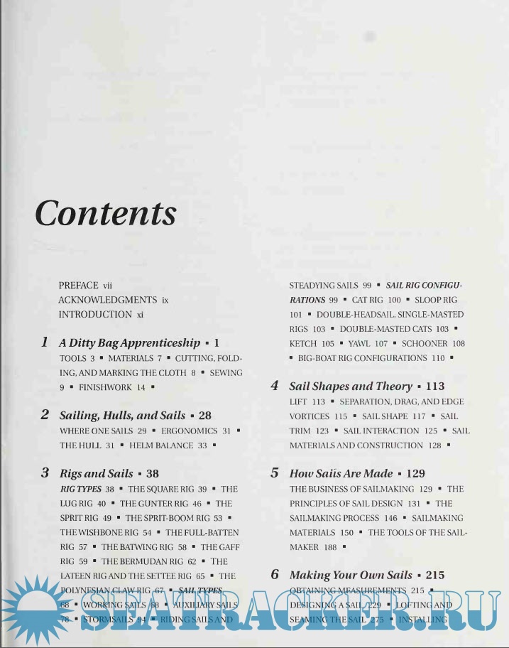 Year: 1994 Language: english Author: Emiliano Marino Genre: Guide Publisher: International Marine Edition: First ISBN: 0-07- 157980-X Format: PDF Quality: Scanned pages Pages count: 518 Description: Learn how to design, make, repair, improve, and maintain sails If you want to produce sturdy sails for daysailing and cruising, built of low-tech materials you can repair with a few simple tools, The Sailmaker's Apprentice can show you how. Emphasizing the handwork that distinguishes the highest-quality, most durable sails, sail pro Emiliano Marino tells you how to select a rig, introduces you to sail shape and theory, and then shows you -- step by step, with the help of over 700 detailed illustrations -- how to sew patches, hand sew rings, fix tears or frayed edges, and stitch seams, not to mention how to make your own sails, canvas sailcovers, and sailbags from scratch. A visual feast for the sailor as well as an indispensable guide for the mariner comprehensive apprenticeship, this hands-on reference is an illustrated tour of the world's rig and sail types, contemporary and historical. Additional info: Please see my other releases! https://seatracker.club/search.ph...1&uid=170047