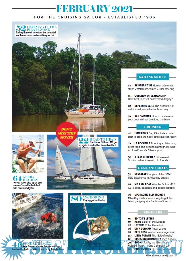 Year: 2021 Language: english Author: Yachting Monthly Genre: Periodical (magazine) Format: PDF Quality: eBook Pages count: 96 Description: Yachting Monthly is at the heart of the British yachting market and is for people who actively sail their boats – whether cruising across the channel, around the coast or further afield in blue waters. It provides an entertaining mix of vital information for cruising yachtsmen with all levels of experience, which maximises their enjoyment, increases their skills and gives them the confidence to broaden their horizons.