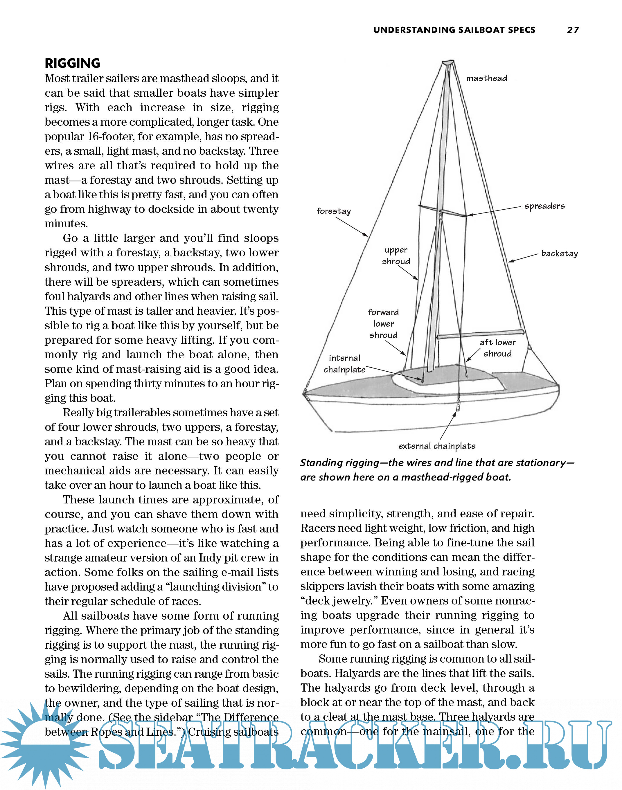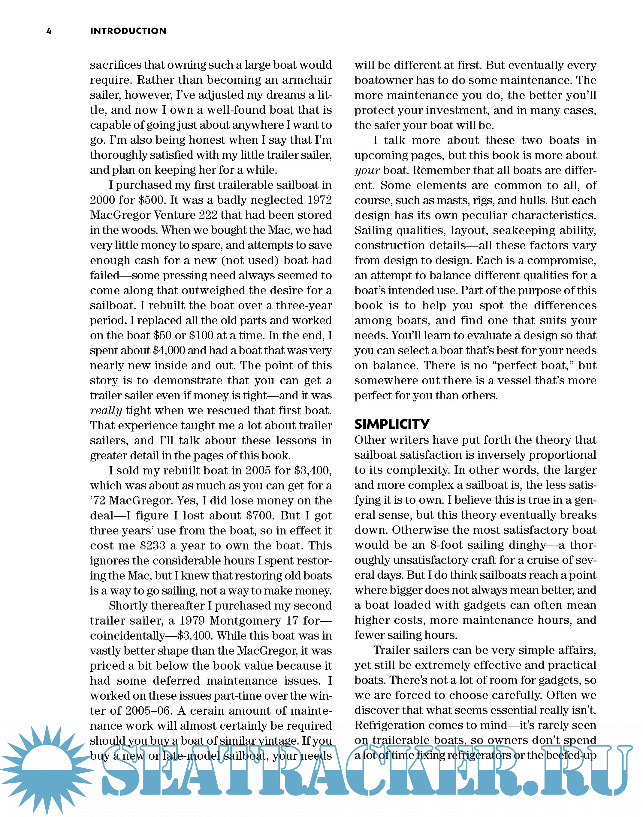 Year: 2009 Language: english Author: Brian Gilbert Genre: Reference book Publisher: International Marine / McGraw-Hill ISBN: 978-0-07-159360-1 Format: PDF Quality: eBook Pages count: 273 Description: A soup-to-nuts introduction to small, economical sailing craft Trailer sailers--the smallest, most economical sailboats with sleeping accommodations--are a popular platform for learning the basics of sailing and are often considered to be the entry level to cruising under sail. Author Brian Gilbert shows how trailer sailers can be the ideal craft for a lifetime of enjoyment, including serious, long-distance cruising. This book covers all the bases, including how to inspect, buy, and equip a boat; how to trailer, sail, navigate, and cruise in small boats; how to use communications and navigation equipment; and more.