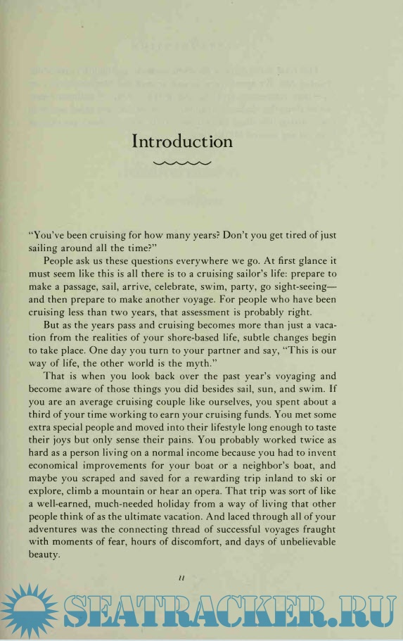 Year: 1981 Language: english Author: Lin and Larry Pardey Genre: Handbook Publisher: W.W. Norton & Company Edition: First ISBN: 0-393-03266-3 Format: PDF Quality: Scanned pages Pages count: 264 Description: Since publication of their first book, Cruising in Seraffyn, a growing audience of Pardey addicts has followed their eleven-year cruise of the world. Seraffyn's European Adventure left the Pardey's in Britain. Now they tell us what happened after they passed Gibraltar and entered the warmer and supposedly more tranquil Mediterranean. Frequently, it lived up to its popular reputation. Just as frequently, it offered them storms and troubles ashore reminiscent of the travails of Ulysses. They explored the Spanish coast and then worked their way back down to the African coast and the Arab world. They tracked Nelson's fleet on its way to the Battle of the Nile and visited Carthage. They called in at Malta before sailing the Adriatic to Trieste and on along the Dalmatian coast to the Greek islands. Along the way, they found themselves smuggling—not drugs, but twenty dollars' worth of noodles! At Rhodes they left Seraffyn for a time while they hired out as ferry pilots to sail another man's boat home to New Orleans. This time they found themselves to be unwitting smugglers of something far different and more dangerous than pasta.