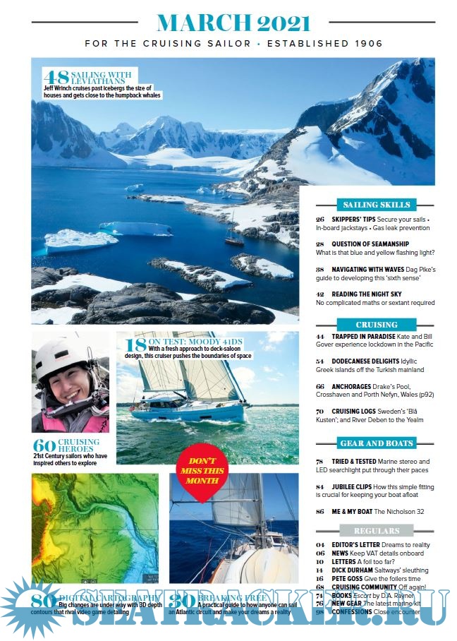 Year: 2021 Language: english Author: Yachting Monthly Genre: Periodical (magazine) Format: PDF Quality: eBook Pages count: 98 Description: Yachting Monthly is at the heart of the British yachting market and is for people who actively sail their boats – whether cruising across the channel, around the coast or further afield in blue waters.It provides an entertaining mix of vital information for cruising yachtsmen with all levels of experience, which maximises their enjoyment, increases their skills and gives them the confidence to broaden their horizons. Additional info: . . . . . . . . . . . . . . Please Press "Thank U " if you download it.