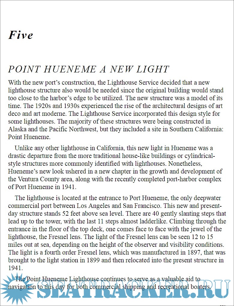 Year: 2011 Language: english Author: Rose Castro-Bran Publisher: Arcadia Publishing ISBN: 9781439625439 Format: EPUB Quality: eBook Pages count: n/a Description: The Ventura County coast has been illuminated for more than a century by three lighthouses, united in their mission of warning mariners of coastal hazards and guiding ships to safe passage. Port Hueneme's original 1874 Victorian Stick Style lighthouse was replaced in 1940 by the a modern structure, which guards the only deepwater port on the California coast between San Francisco and San Pedro. The Anacapa Island Light, a cylindrical brick structure in the Channel Islands lit in 1932, was the last new lighthouse on the West Coast. Ventura, originally dubbed San Buenaventura by Fr. Junipero Serra in 1782, extends its "good fortune" to the steamers, warships, tankers, and other craft guided to safety by these navigation beacons. The author is in the U.S. Coast Guard Auxiliary and a member of the Coast Guard's Aids to Navigation Team, helps maintain California's lighthouses, and has been museum curator of Point Hueneme Lighthouse since 2002. The book is extremely informative on the history of the Anacapa and Point Hueneme lighthouses, illustrated by vintage images coming from private collections, local museums, lighthouse keepers' families, and the Point Hueneme Lighthouse collection.