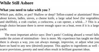 Coping with the urge to write a galley cookbook, I have spent years jotting down my experiences (and those of my friends) collected during regattas and sailing trips. This gourmet archive forms the mainstay of this cookbook.