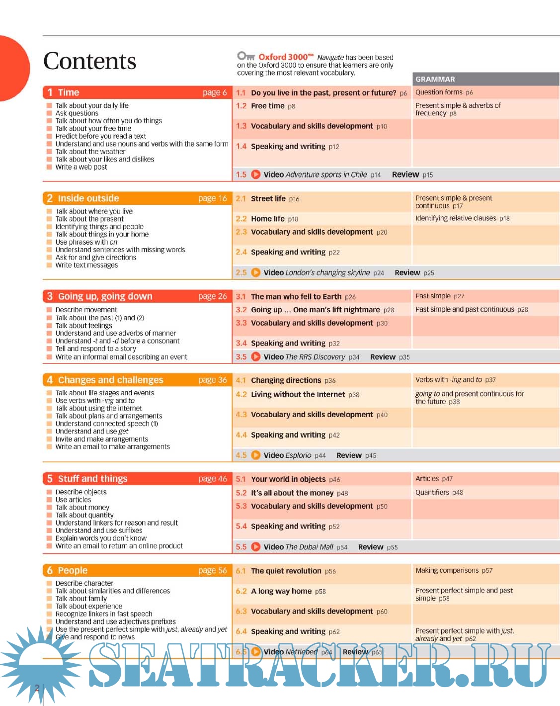 Year: 201? Language: english Author: Oxford University Press Genre: English Course for Adults Publisher: Oxford University Press Format: PDF+MP3+MP4 Quality: Format: PDF (eBook) Audio codec: MP3 Audio Bitrate: 128 , 192 kbps Quality of video: DVDRip Video: MPEG4 Video 720x480 23.976fps 4120kbps Audio: AAC 44100Hz stereo 151kbps Description: Oxford Navigate - Unlock the rules and patterns of English https://elt.oup.com/catalogue/items/global/adult_courses/navigate/?cc=fr&selLanguage=en&mode=hub Navigate combines information-rich topics, state-of-the-art-methodology, and a modern blended package to provide the complete course for the 21st century adult and young adult learner. A brand new adult course based on academic research as to how adults best learn languages and extensive classroom research. Navigate is a brand new, SIX-level General English course tailored exclusively to adults. • Language Level: from A1 Beginner to C1 Advanced The course takes an innovative approach to reading and listening based on academic research as to how adults best learn languages. It teaches reading and listening from the bottom up, giving learners the skills they need to understand the next text they will read and hear, not just the one they are reading or hearing now. The content has been extensively piloted and reviewed in ELT classrooms across the world, giving teachers the confidence that it really works. Navigate's contemporary, information-rich topics appeal to today’s learners seeking future success in social, professional, and academic arenas. The state-of-the-art methodology is backed up by latest research and practical teacher feedback to promote accuracy, fluency, and development of all four skills. The innovative approach to reading and listening with targeted, language-based activities helps learners improve their ability in comprehension. • The Coursebook and Workbook are both available as fully interactive e-books • Available for iPad and Android tablets via the Oxford Learner’s Bookshelf app, through iTunes and Google Play, and online for computer at www.oxfordlearnersbookshelf.com. • Key features: - Innovative approach to skills development focused on targeted, language-based activities. - Integrated video and audio you can access straight from the page - Improve pronunciation with repeat, record, and compare feature - Audio can be slowed down to hear every word clearly - Instant marking helps learners check their progress - Learners can write and save notes on every page - Information-rich topics and texts immerse adult learners in themes and issues from around the world so that learning English is more relevant - Driven by learning outcomes and end goals of adult learners, so that learners can make the most of their time - Based on the Oxford 3000™ so learners are only covering the most relevant vocabulary for them - Extra supporting videos for teachers from Series Advisor Catherine Walter - Based on the Oxford 3000™ so learners are only covering the most relevant vocabulary for them - Driven by learning outcomes and end goals of adult learners, so that learners can make the most of their time - Truly adult and truly international - Information-rich topics and texts immerse adult learners in themes and issues from around the world so that learning English is more relevant - Based on extensive academic and classroom research - Learner materials have been thoroughly tested and piloted in ELT classrooms across the world - giving teachers confidence that it works - Innovative approach to skills development based on academic research helps your learners to listen and read for tomorrow - Innovative skills strand takes a bottom-up decoding approach to listening and reading - Equal weight given to grammar and vocabulary learning with clear on-the-page practice - Vocabulary based on the Oxford 3000 and levelled against the CEFR, giving learners the relevant language they need to communicate in the world today - Clear aims and outcomes linked to the CEFR throughout the course - Learners are immersed in themes and issues from around the world through content-rich, authentic texts that are really relevant to adult learners - Focus on vocabulary systems and vocabulary-building techniques - Real world video content provides integrated listening practice – video lesson in every unit plus vox pops throughout the course - Speaking practice throughout each lesson to help learners become more confident at using new language in the real world. .