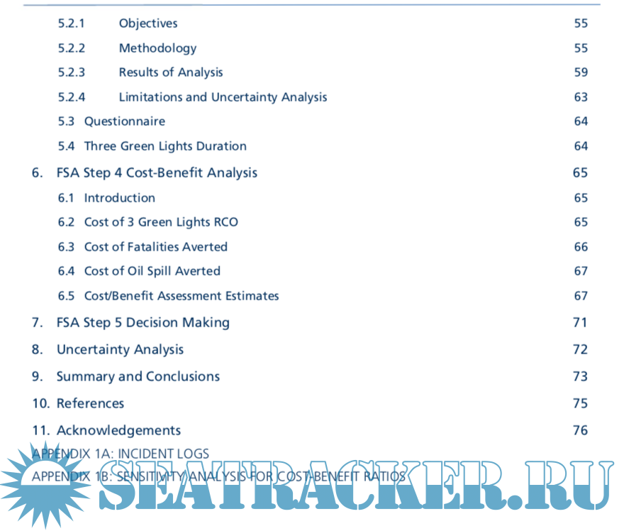 Year: 2015 Language: english Author: Tamunoiyala, Koko and Capt. Jack Gallagher Genre: Guide Publisher: Lloyd' Register Marine Format: PDF Quality: eBook Pages count: 282 Description: This study was undertaken to perform a formal safety assessment (FSA) for the use of three green lights night signal for vessels crossing the traffic separation scheme (TSS) and precautionary areas in the Singapore Strait. In order to demonstrate the applicability of the study results to other areas worldwide with TSS, investigations of the traffic and navigational risks in two other selected areas with TSS, namely, the English Channel and San Francisco Bay were also undertaken. The study was carried out in accordance with IMO's FSA guidelines. FSA, a rational and systematic process for assessing the risks relating to maritime safety and the protection of the marine environment and for evaluating the costs and benefits of IMO’s options for reducing these risks, involves the following five stages: (1) Identification of hazards; (2) Risk analysis; (3) Risk control options; (4) Cost-benefit assessment; and (5) Recommendation for decision-making. These FSA steps were addressed through a number of studies and activities, including a review of historical incidents/ data, expert opinion during a HAZID workshop, traffic and ship simulation exercises, and cost-benefit analysis.