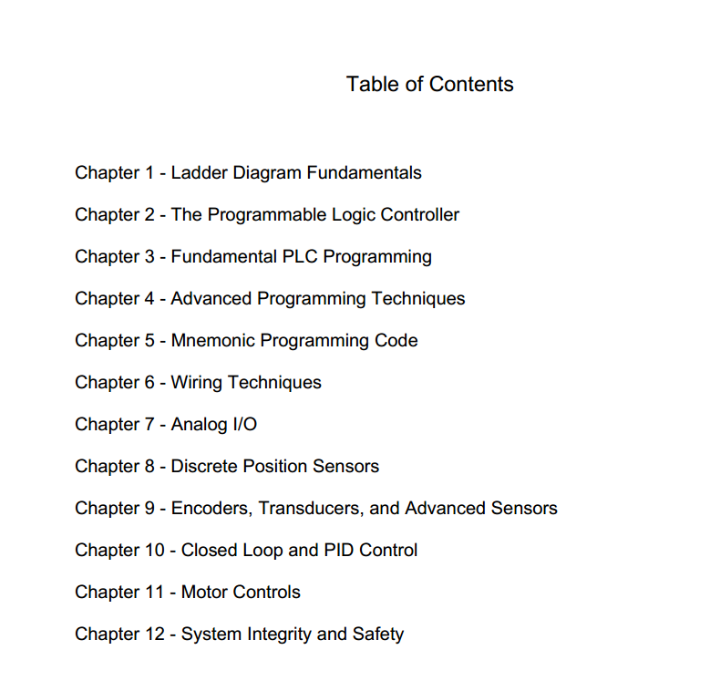 Description: This book is designed to help readers develop a good general working knowledge of programmable controllers with concentration on relay ladder logic techniques and how PLC is connected to external components in an operating control system. The book uses real world programming problems that readers can solve on any available programmable controller or PLC simulator. Later chapters relate to more advanced subjects in machine controls making this a welcome addition to a personal technical reference library. KEY TOPCIS: The authors examine ladder diagram fundamentals, the programmable logic controller, fundamental PLC programming, advanced programming techniques, mnemonic programming code, wiring techniques, analog I/O, discrete position sensors, encoders, transducers, and advanced sensors, closed loop and PID control, motor controls, and system integrity and safety. For those involved in Electrical, Automation, Control, and Process Engineering.